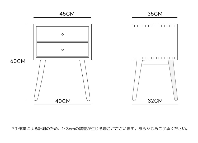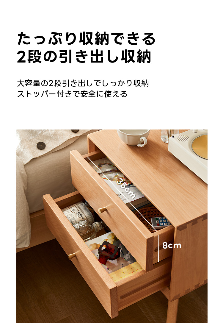 - 【適用性と利便性】高さ60cmのコンパクトサイズで、ベッドサイドにぴったりの収納家具です。2段の引き出しにはストッパーが付いており、日常の小物をたっぷり収納できます。家庭内の整理整頓に最適です。