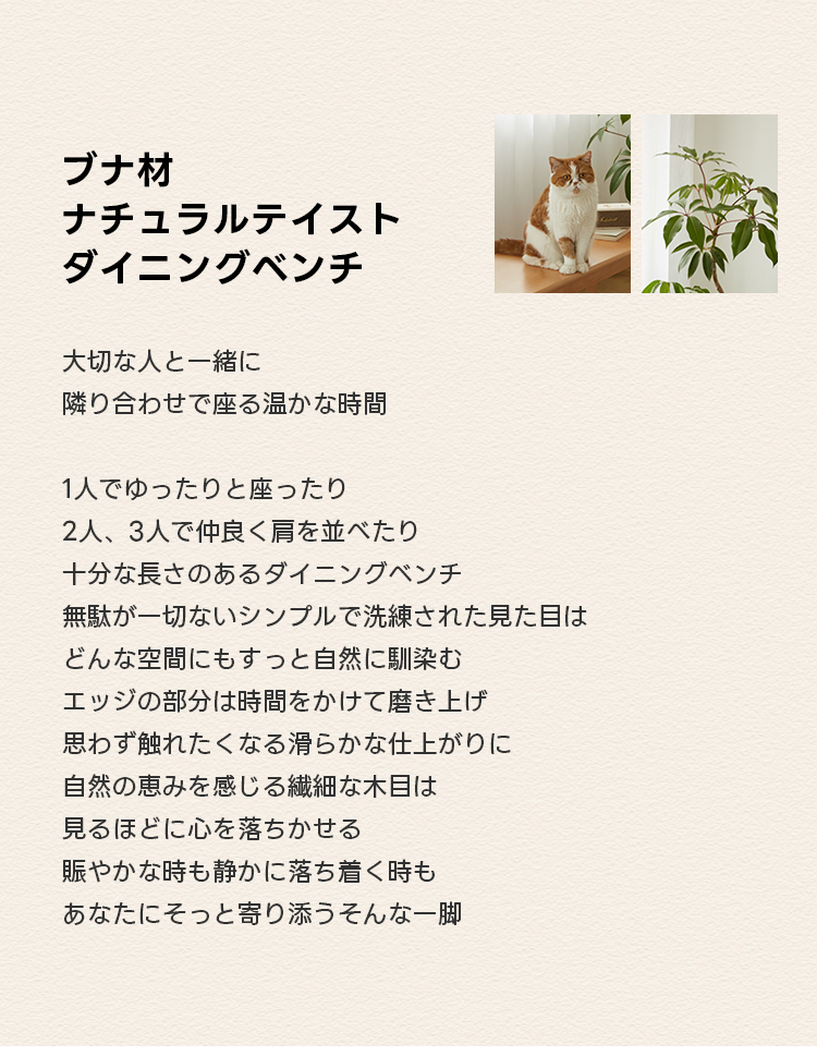 ブナ材ナチュラルテイストダイニングベンチ