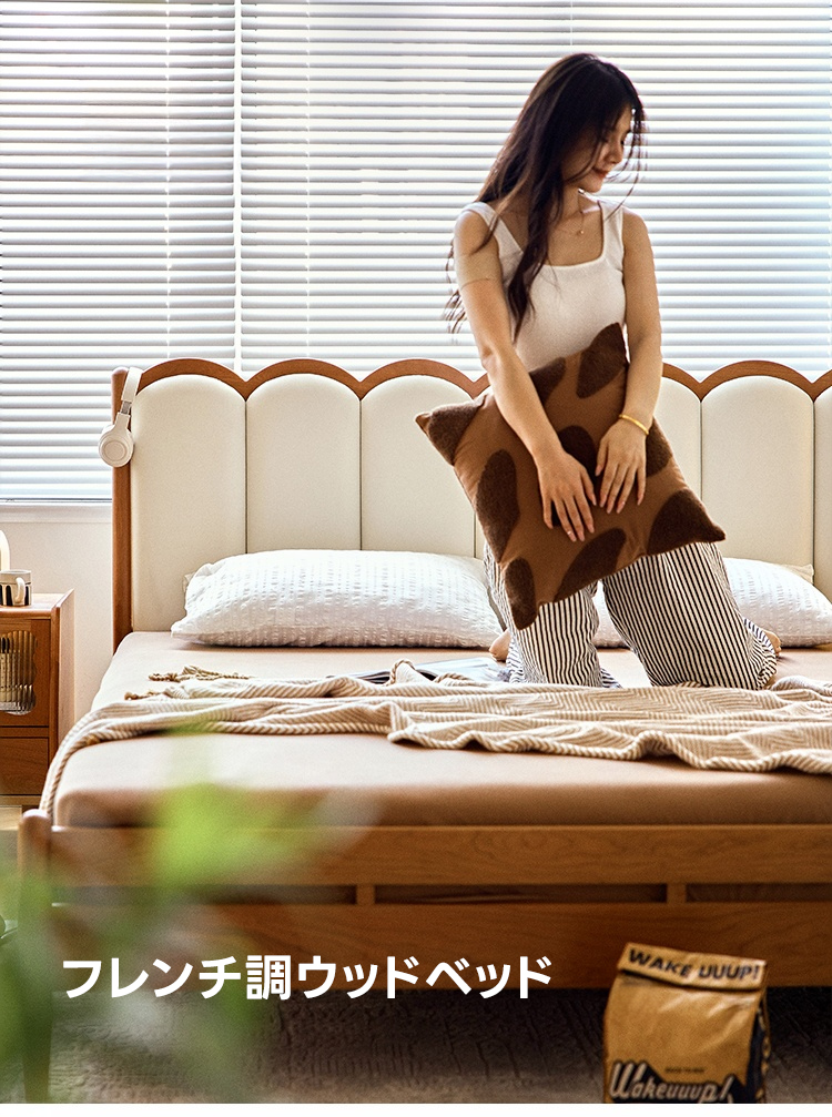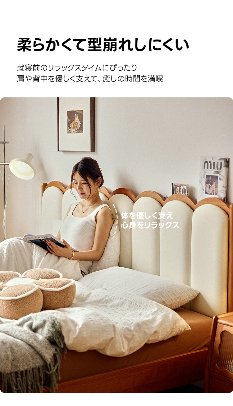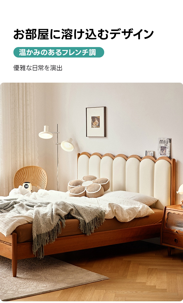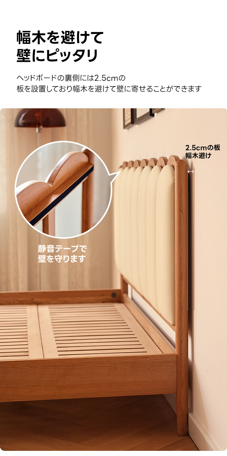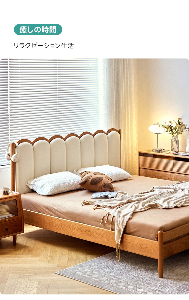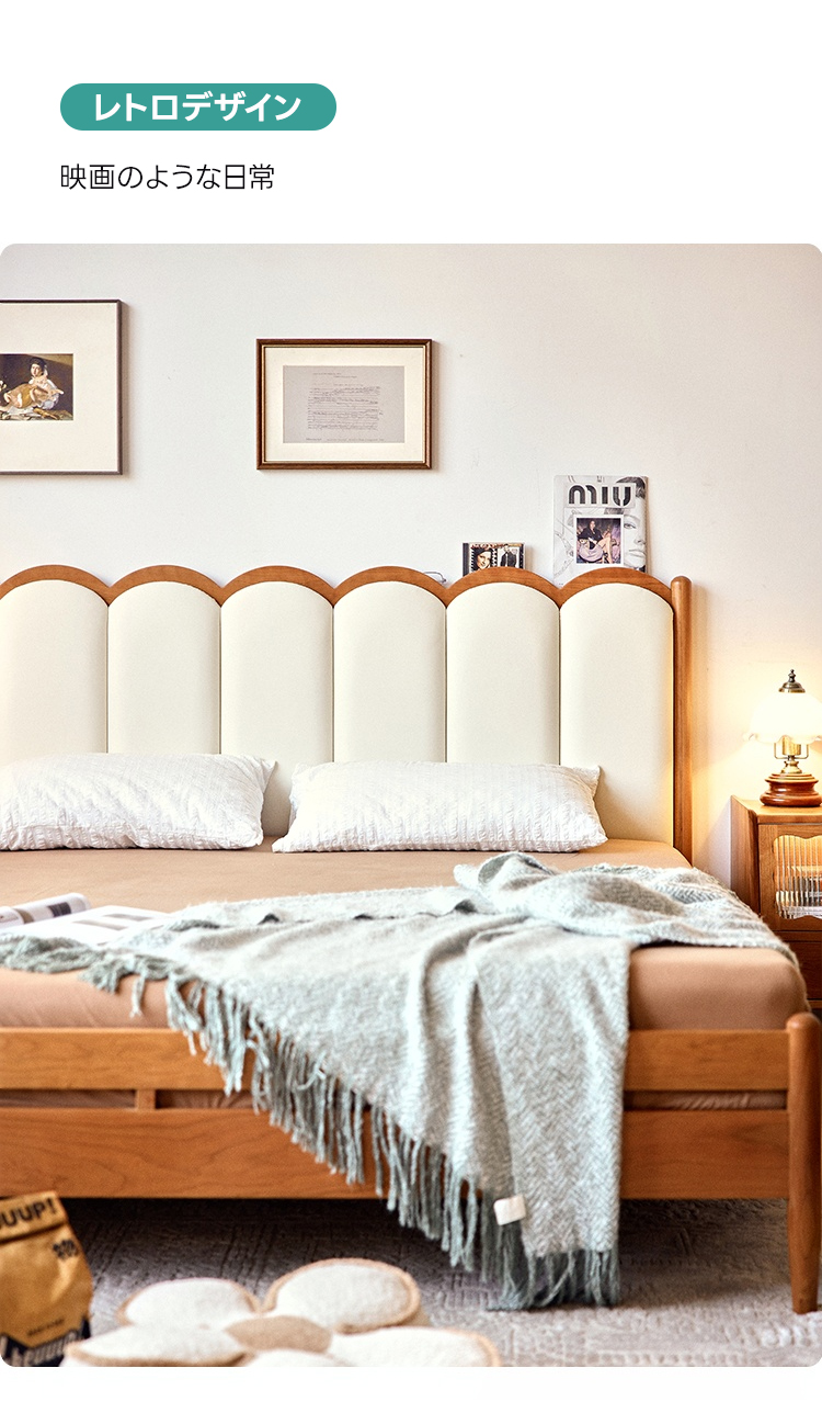 - 【高品質な素材とデザイン】北米産FAS級チェリー材を使用し、自然な木目と温かみのある色合いが特徴です。ヘッドボードにはウレタンとシリコンレザーを組み合わせ、快適な背もたれを実現しています。