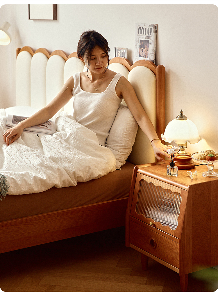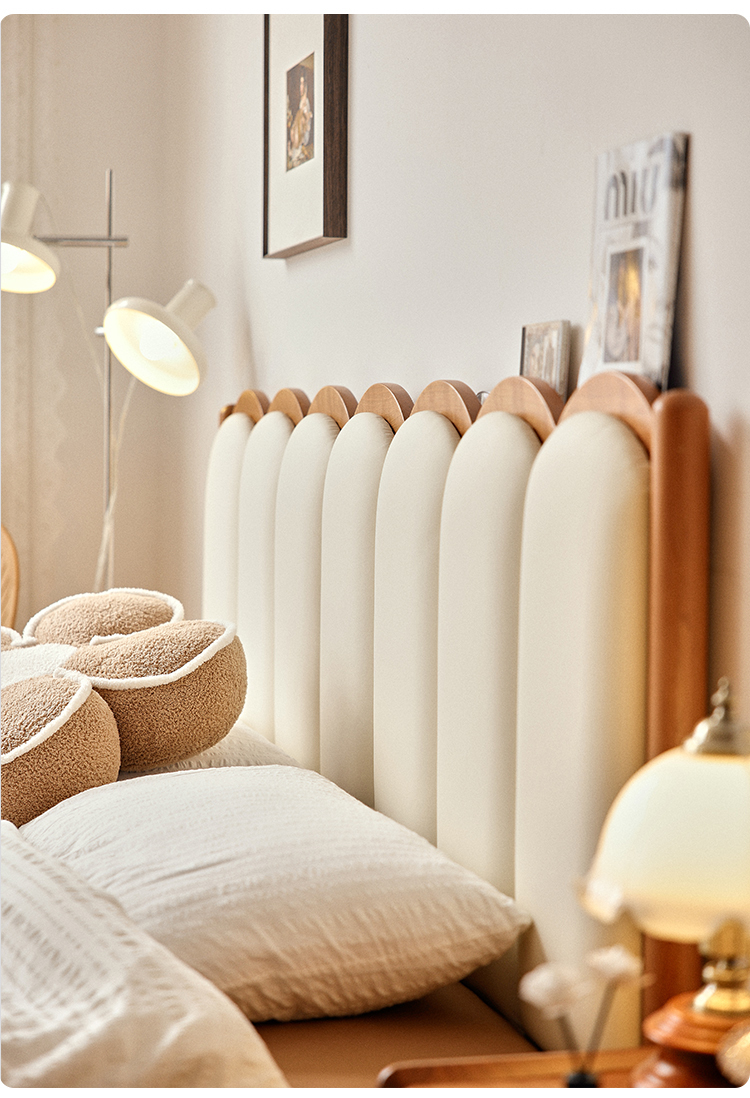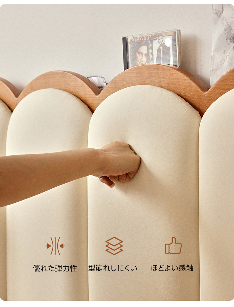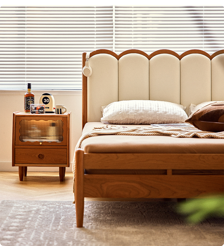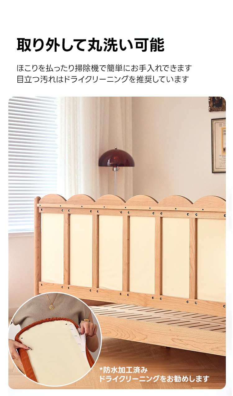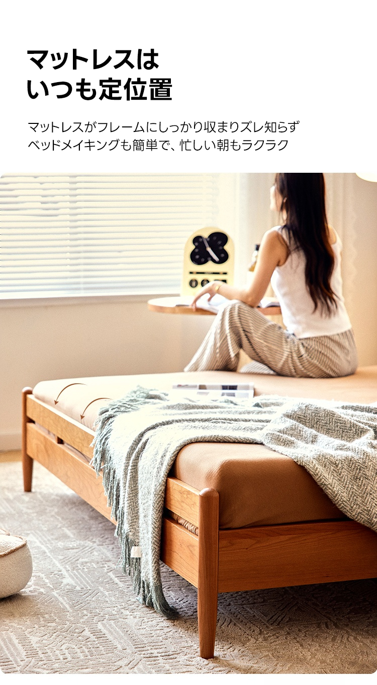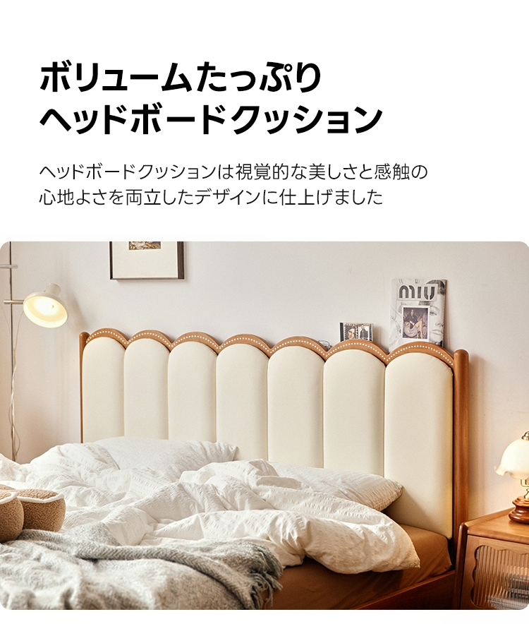 - 【高品質な素材とデザイン】北米産FAS級チェリー材を使用し、自然な木目と温かみのある色合いが特徴です。ヘッドボードにはウレタンとシリコンレザーを組み合わせ、快適な背もたれを実現しています。