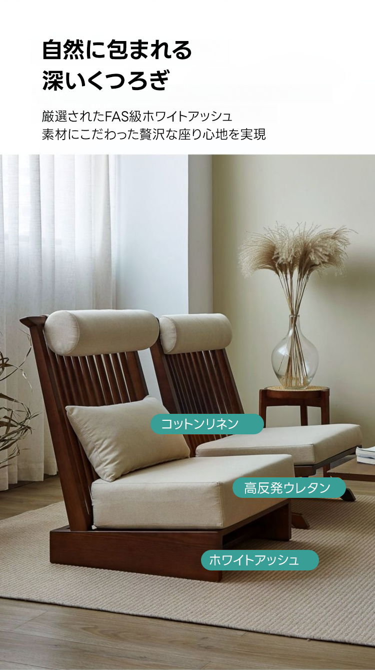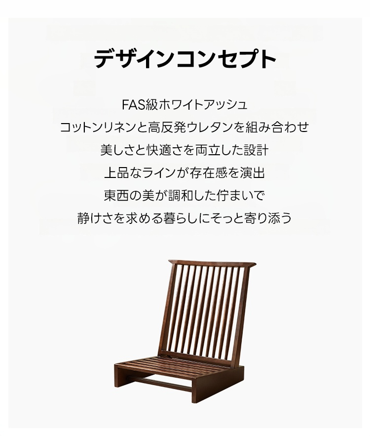 - 【高品質な素材とデザイン】:FAS級ホワイトアッシュを使用し、耐久性と美しさを兼ね備えています。コットンリネンと高反発ウレタンの組み合わせで、快適な座り心地を提供します。
