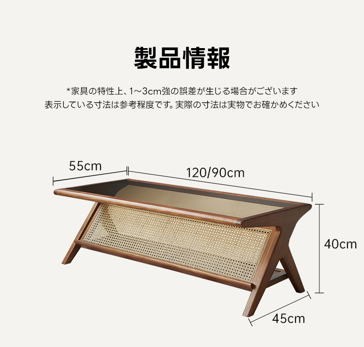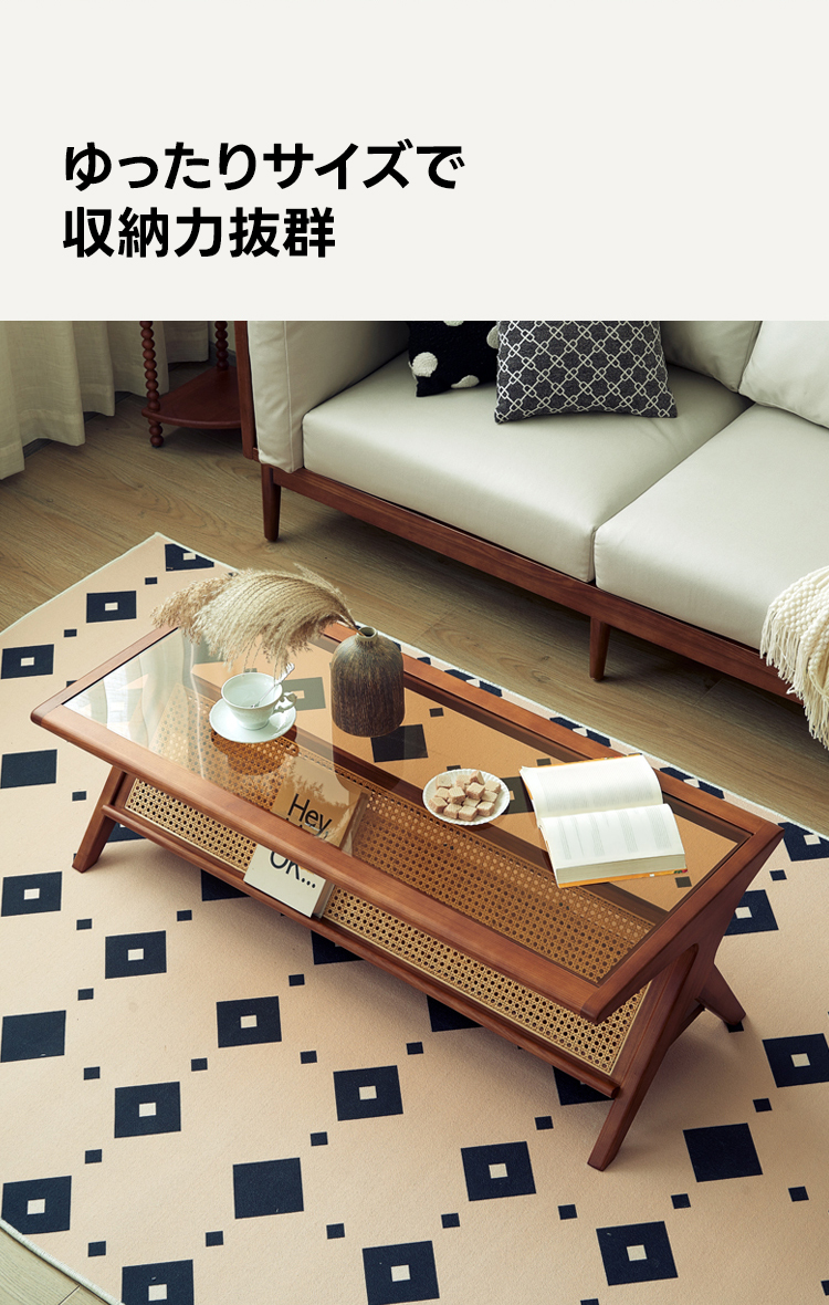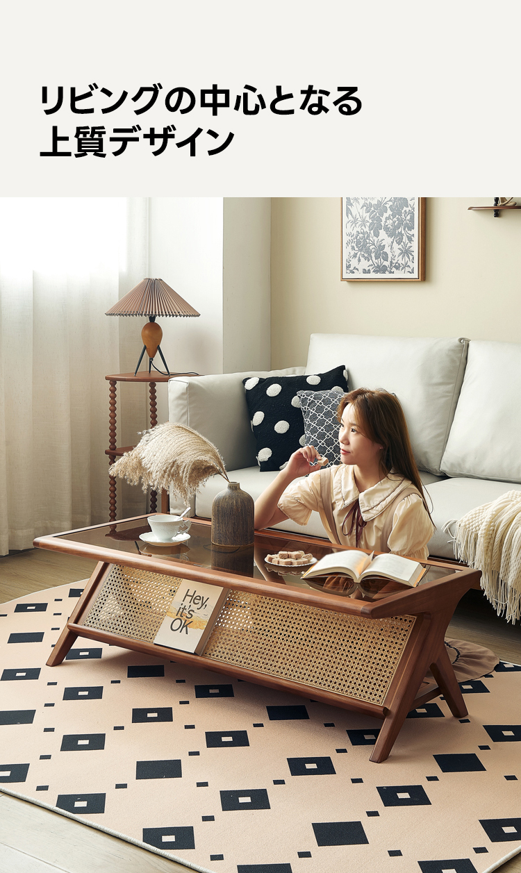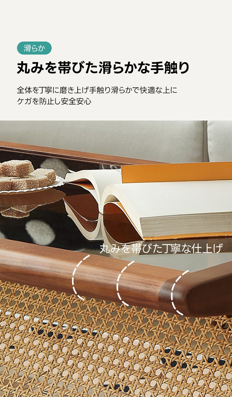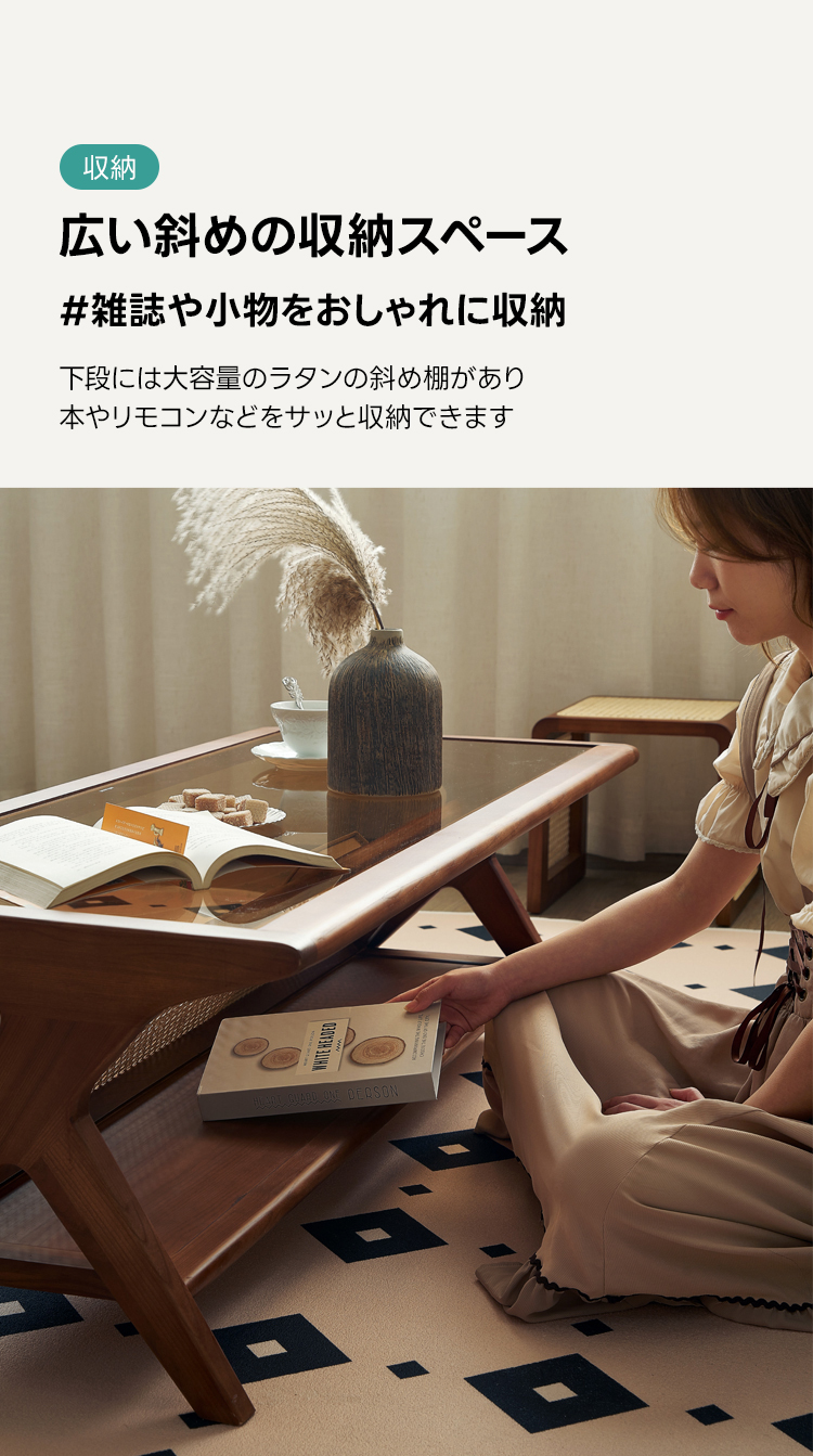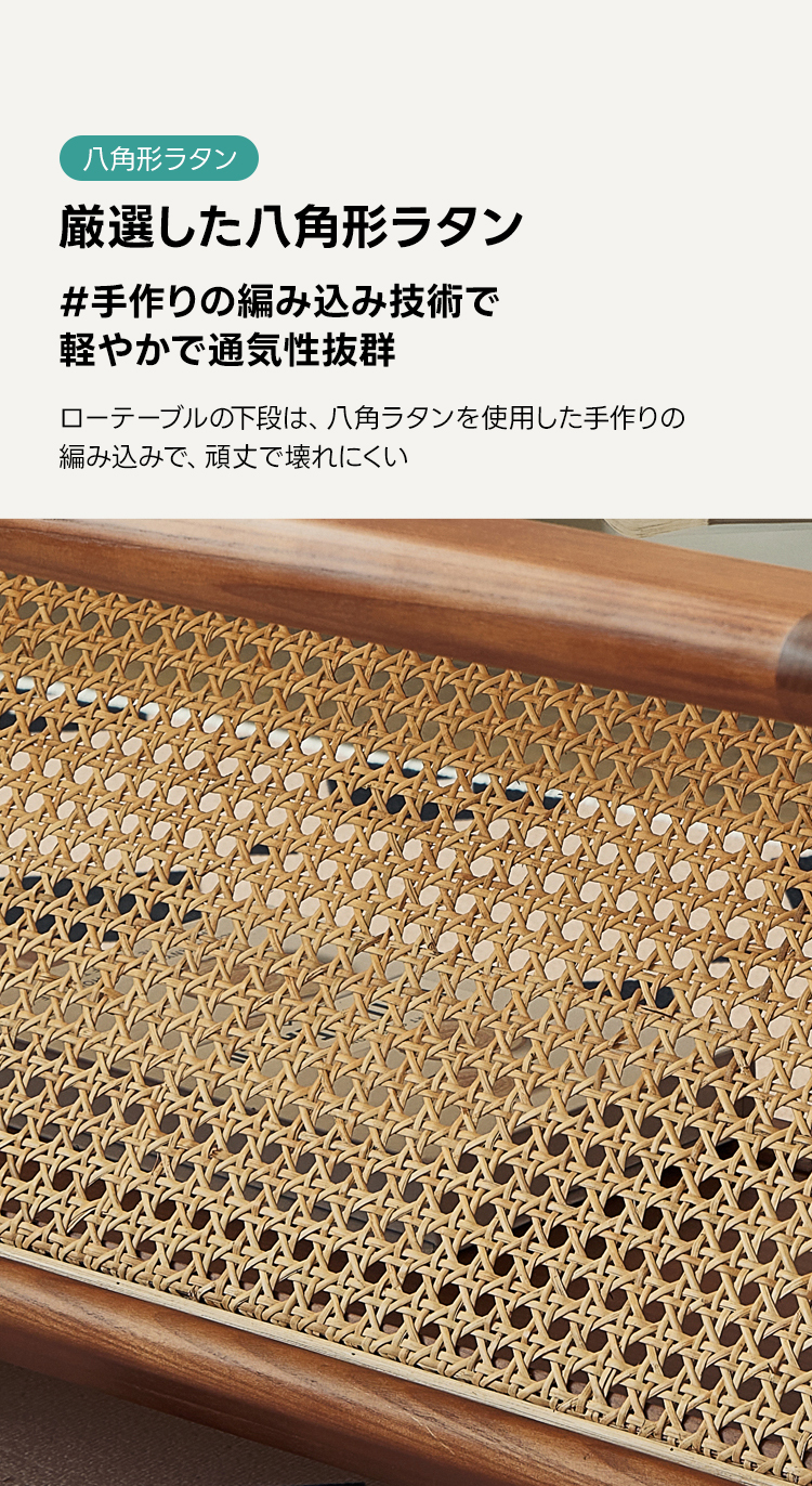 - 【快適な使用体験】:ゆったりとしたサイズで、収納力も抜群です。下段には斜めのラタン棚があり、雑誌やリモコンなどをおしゃれに収納できます。丸みを帯びた滑らかな手触りで、丁寧な仕上げが施されています。