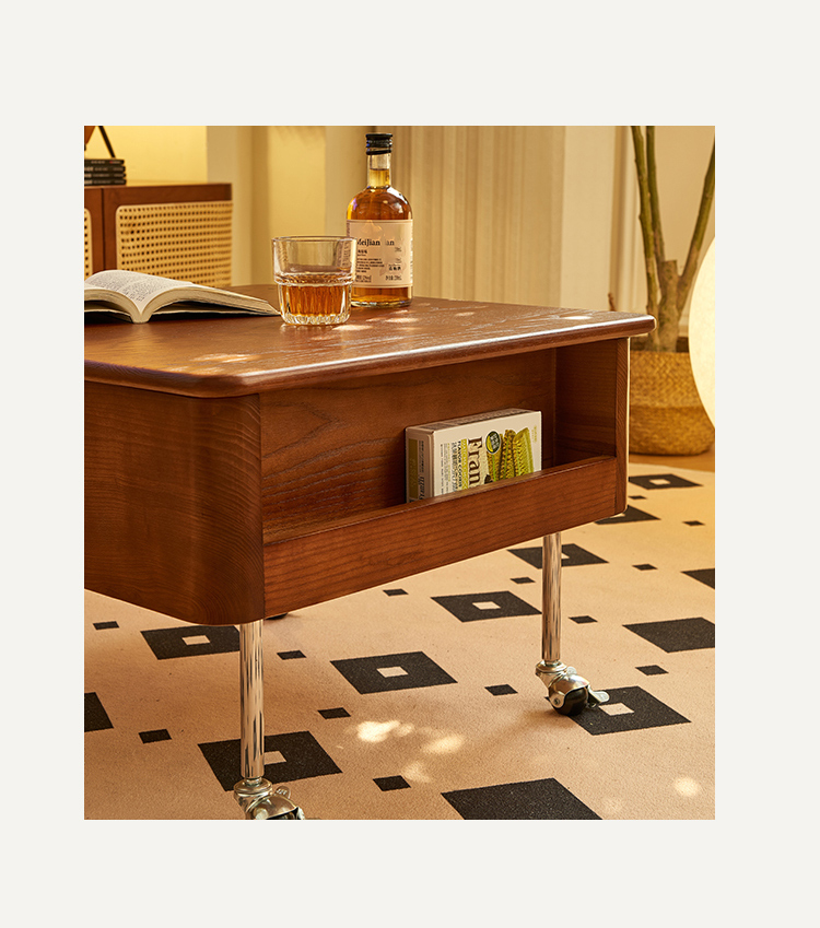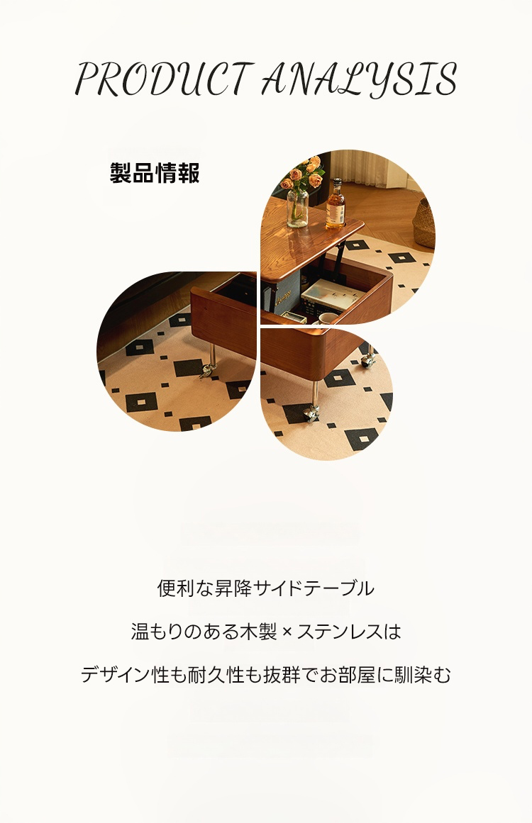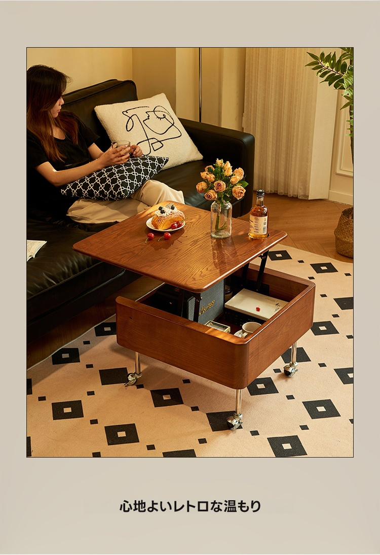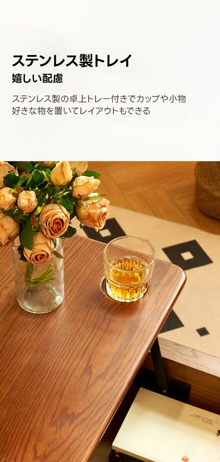 - 【多機能な収納力】隠し収納スペースを備えたこのテーブルは、16cmの高さで本や小物をすっきりと収納可能です。さらに、サイドオープン収納もあり、リモコンやアロマなどの小物を整理整頓できます。