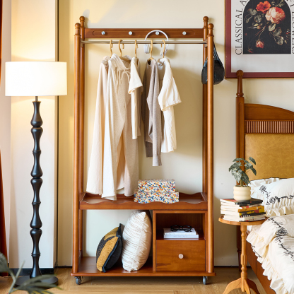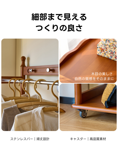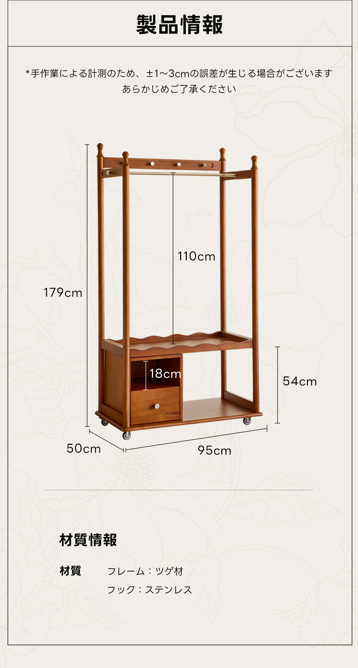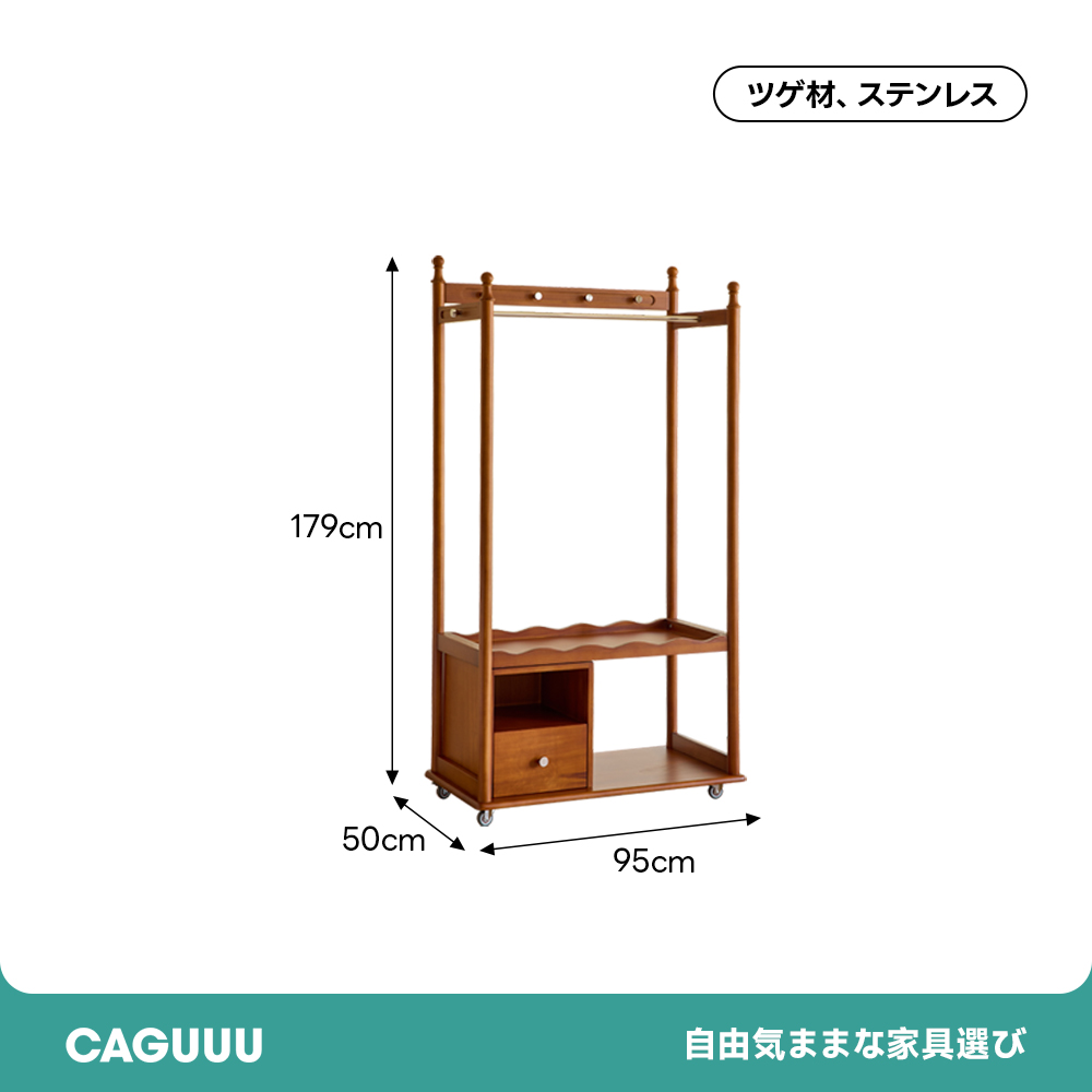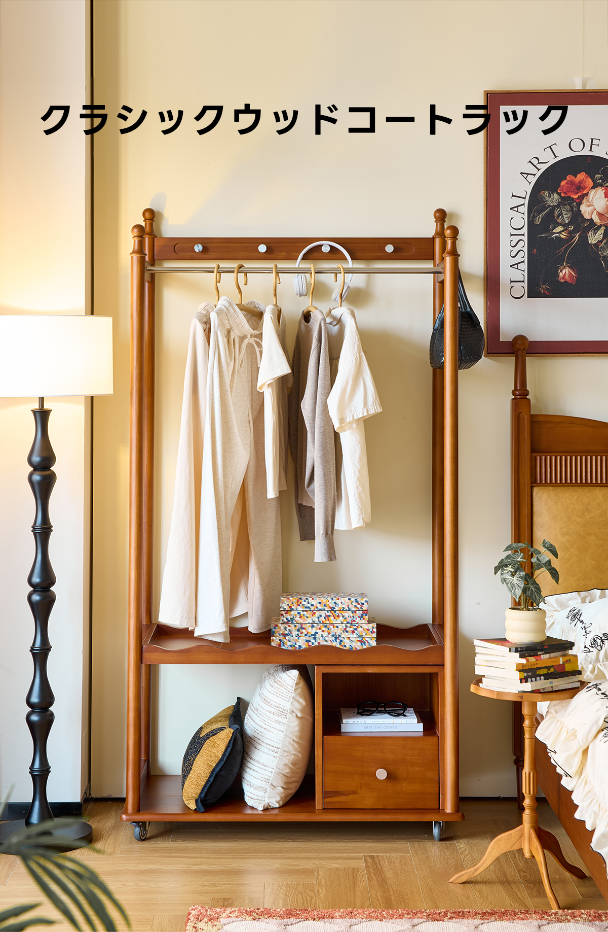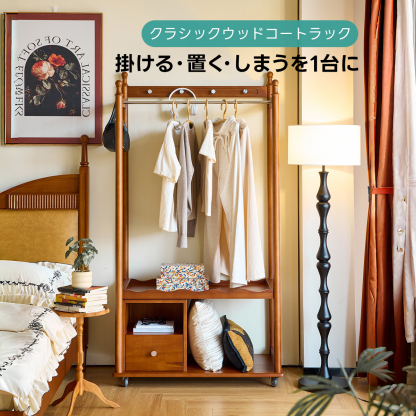 - 【多機能収納と耐久性】クラシックウッドコートラックは、上部のハンガーバーと下部の棚、引き出しを備え、衣類や小物をすっきり整理できます。ステンレス製フックが付いており、耐久性も抜群です。