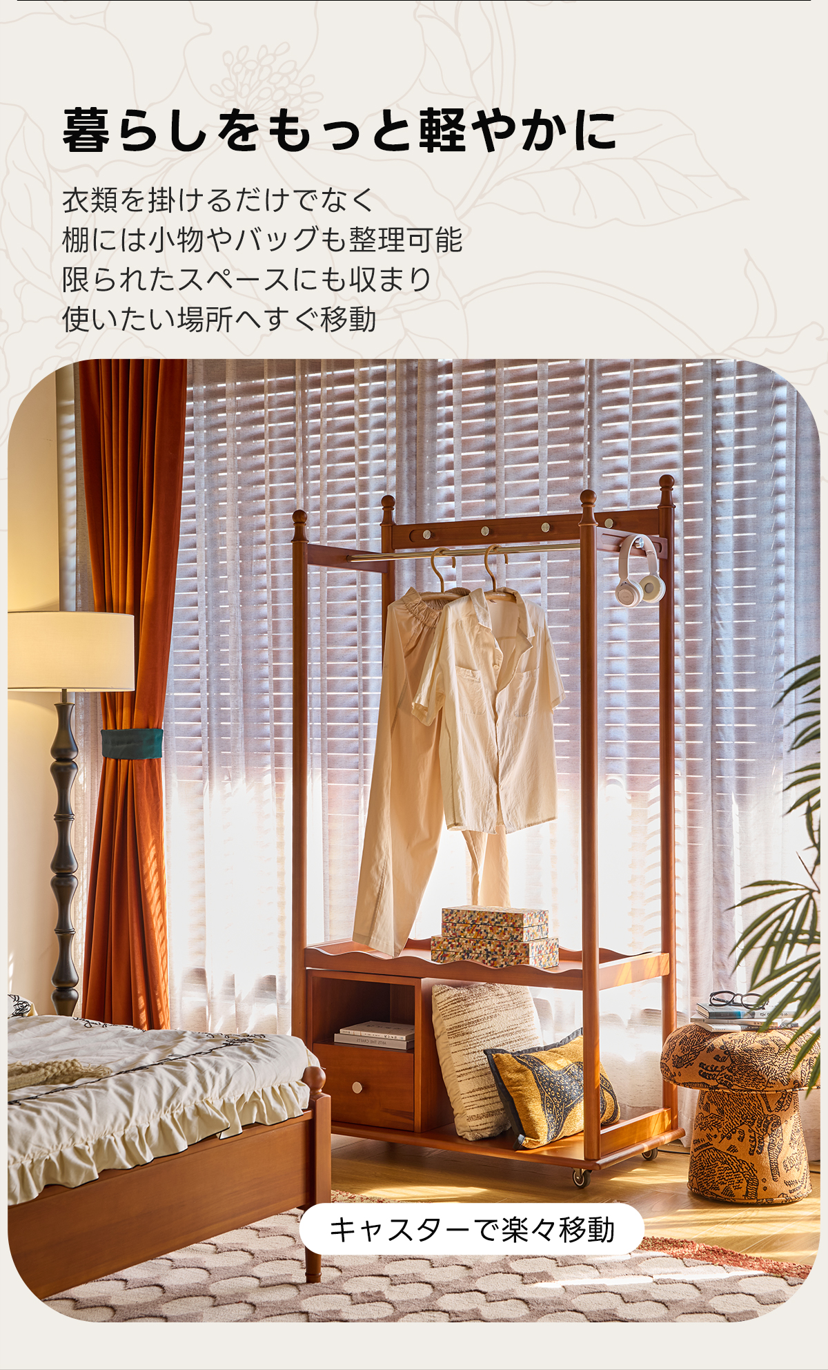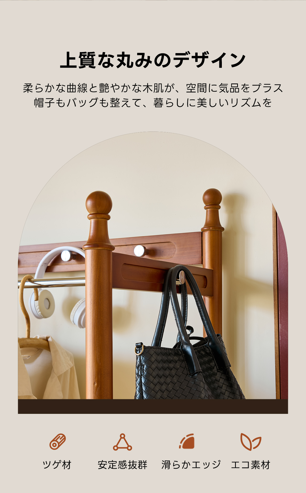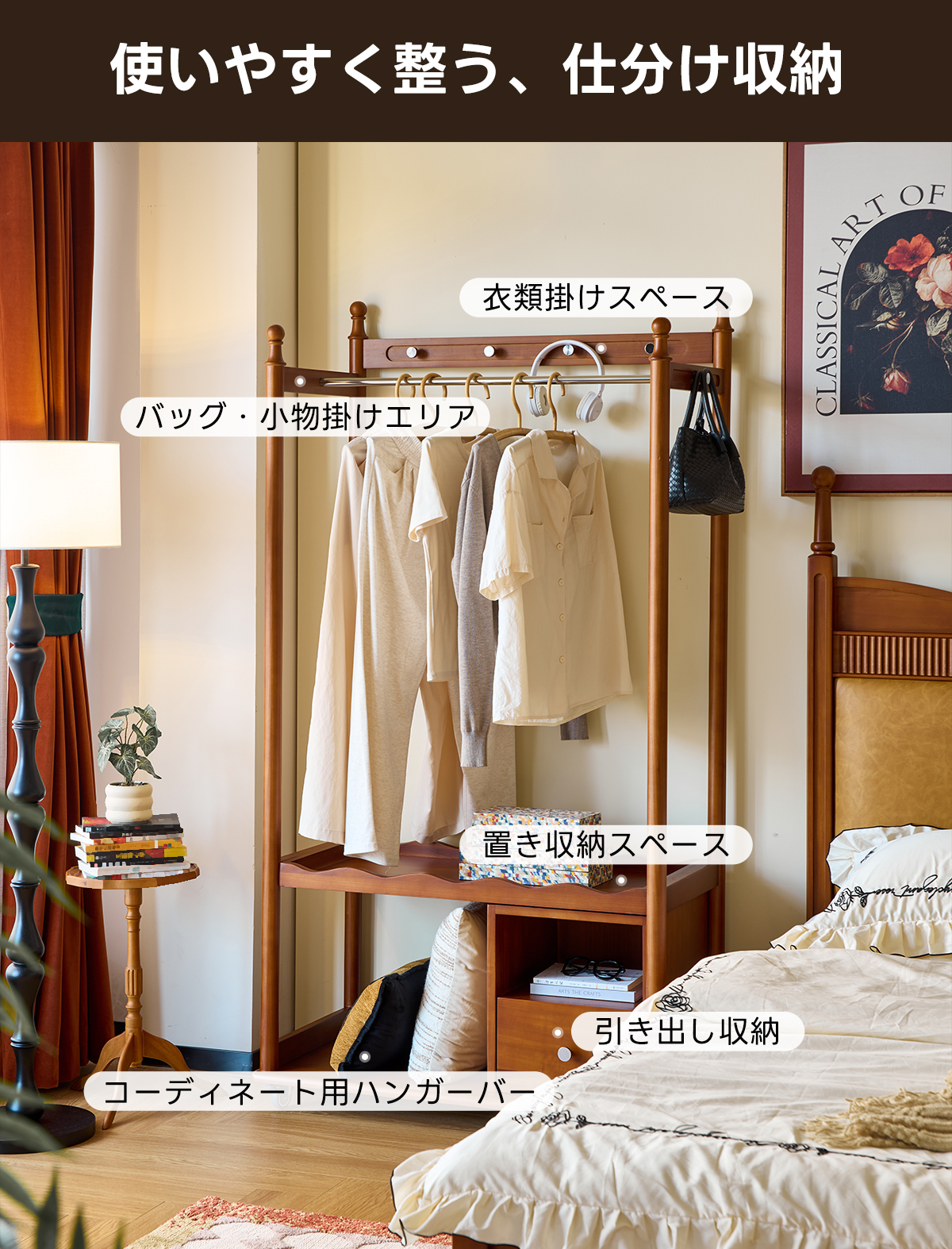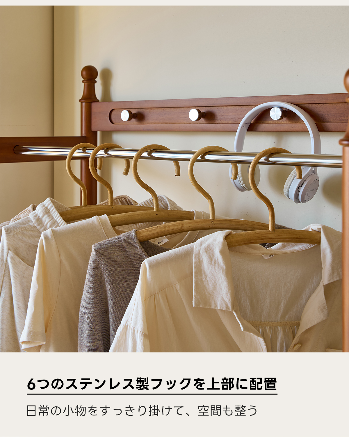 - 【適用シーンと利便性】寝室やリビングにぴったりのデザインで、一人暮らしやカップル、ファミリー向けに最適です。限られたスペースでも効率的に収納が可能で、日常の小物を簡単に掛けられます。