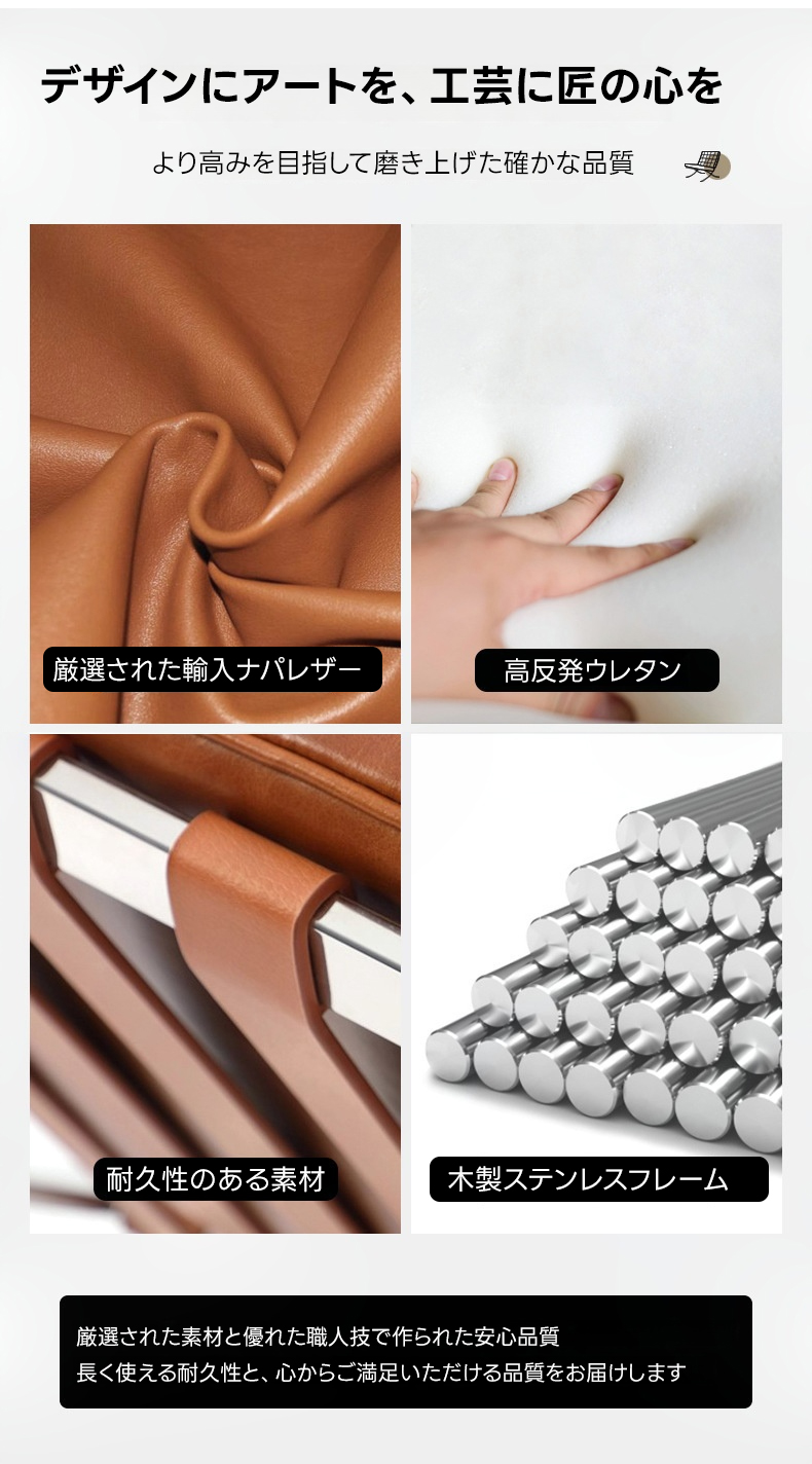 - 【高品質レザーとステンレスフレーム】:イタリア輸入のナパレザーを使用し、柔らかく快適な肌触りを提供します。頑丈なステンレスフレームは耐久性が高く、長期間の使用でも美しさを保ちます。