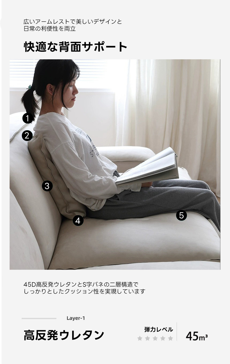 - 【エレガントなデザインと快適な座り心地】イタリアンモダンフロアソファは、エレガントでシンプルなデザインが特徴です。高級マイクロファイバースエード生地と高反発ウレタンクッションを使用し、快適な座り心地を提供します。