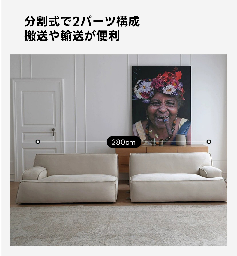 - 【安心の組立品とアフターサービス】このソファは分割式で2パーツ構成になっており、搬送や輸送が便利です。安心してご使用いただけるよう、充実したアフターサービスを提供しています。