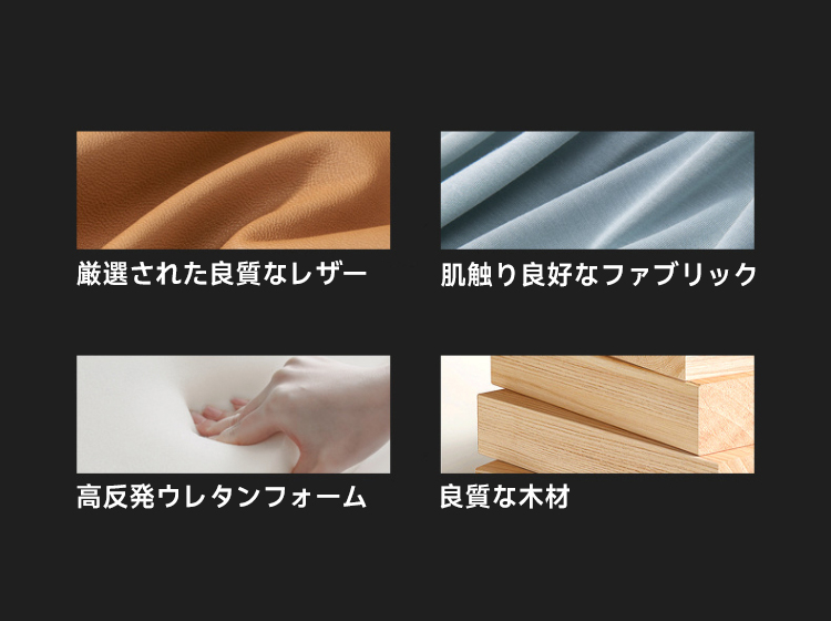 • 【高品質素材と耐久性】厳選された良質なレザーと、丈夫な木製フレームを使用しています。高反発ウレタンフォームが快適な座り心地を提供し、長期間の使用にも耐えられる設計です。