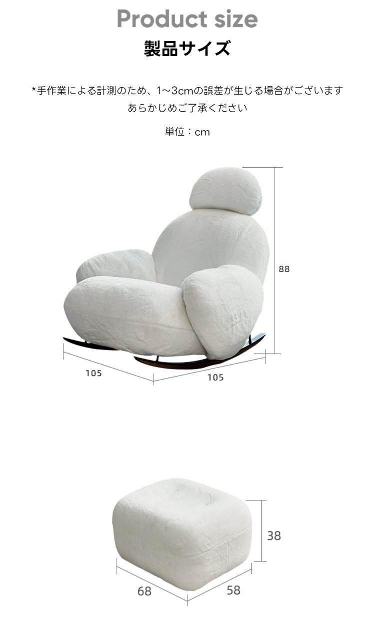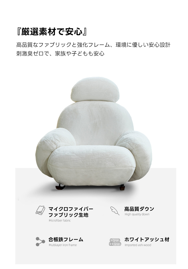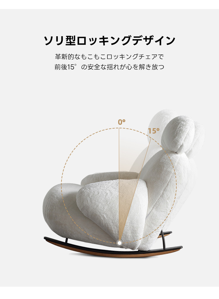 - 【快適な座り心地とサポート】:もこもこロッキングチェアは、高品質なダウンとPP綿を使用し、ふんわりとした柔らかさとしっかりとしたサポートを提供します。座るたびに包み込まれるような心地よさを体感できます。