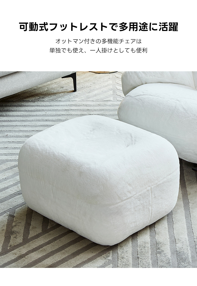 - 【リラックスできるオットマン付き】:可動式フットレストとしてオットマンが付属しており、足を伸ばしてリラックスできるだけでなく、単独でも使用可能です。読書やテレビ鑑賞をより快適に楽しめます。