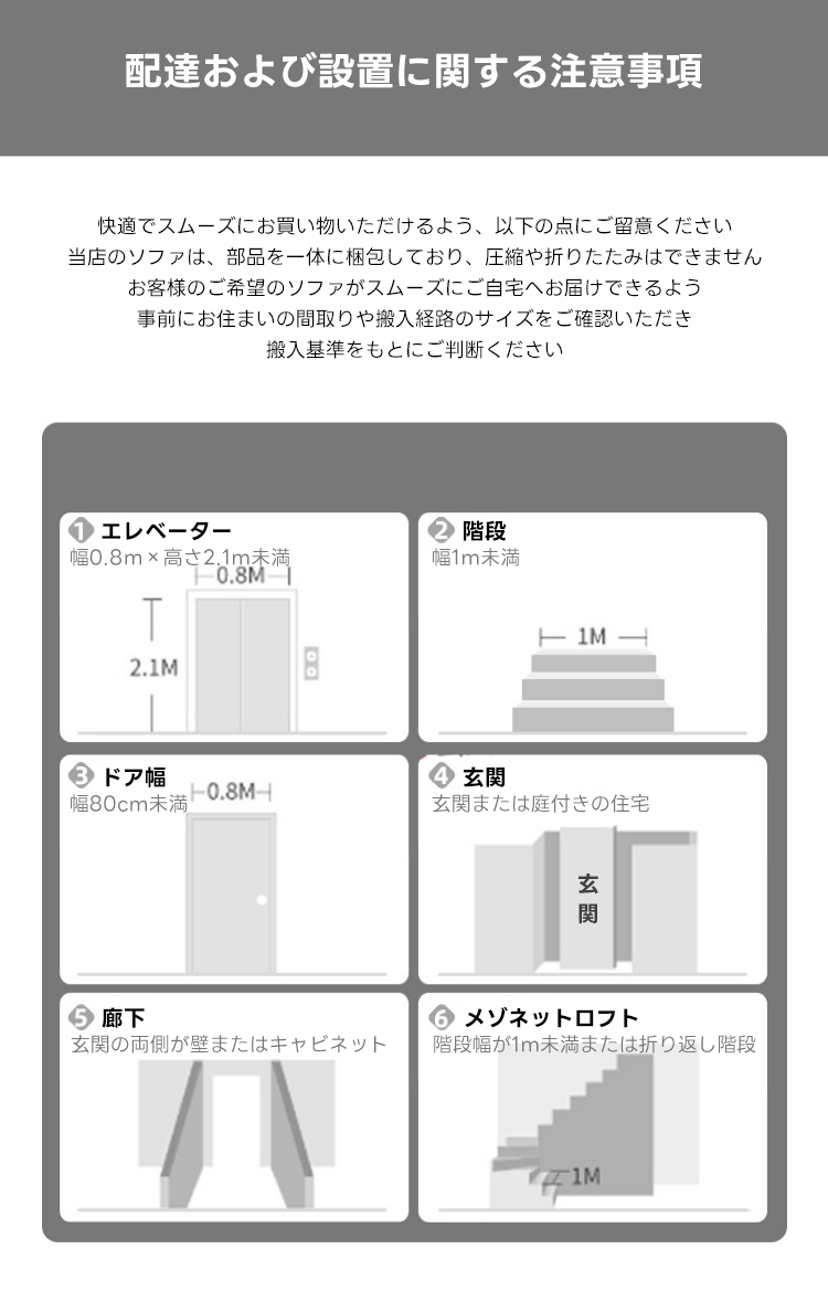 ※搬入不可等の理由による注文キャンセルは、ご返送にかかる費用をお客様にご請求いたします。ご注文前に大型家具の搬入方法をご確認ください。
