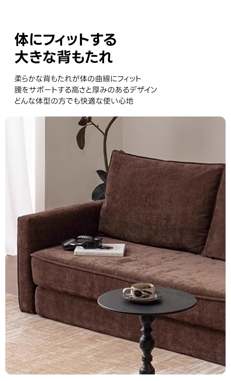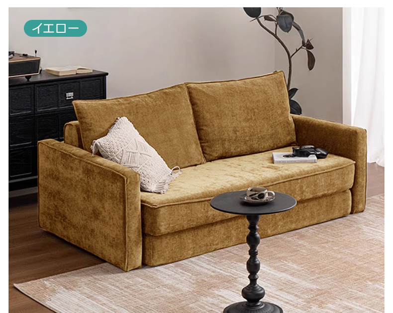 - 【選べるカラーでお部屋にマッチ】:モカ、ベージュ、イエローの3色展開で、お好みに合わせて選べます。シンプルモダンなデザインはどんなインテリアにも調和し、一人暮らしやカップル、ファミリーにぴったりの二人掛けソファです。