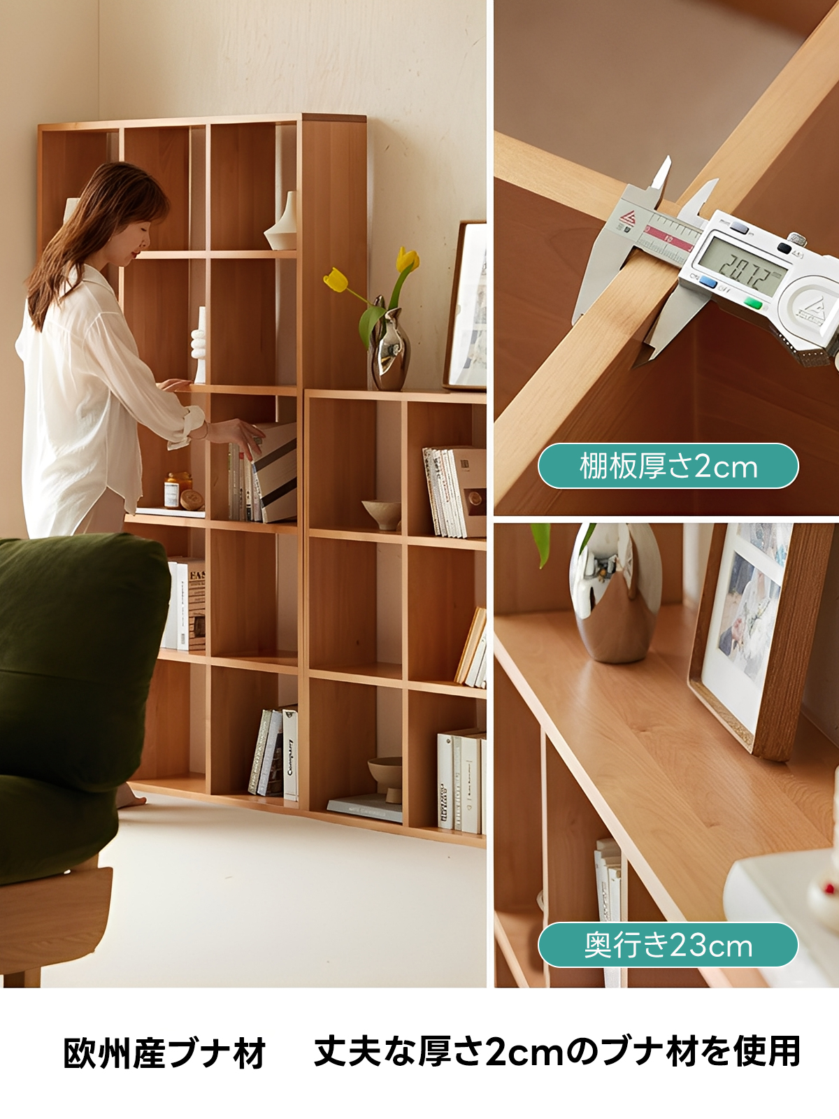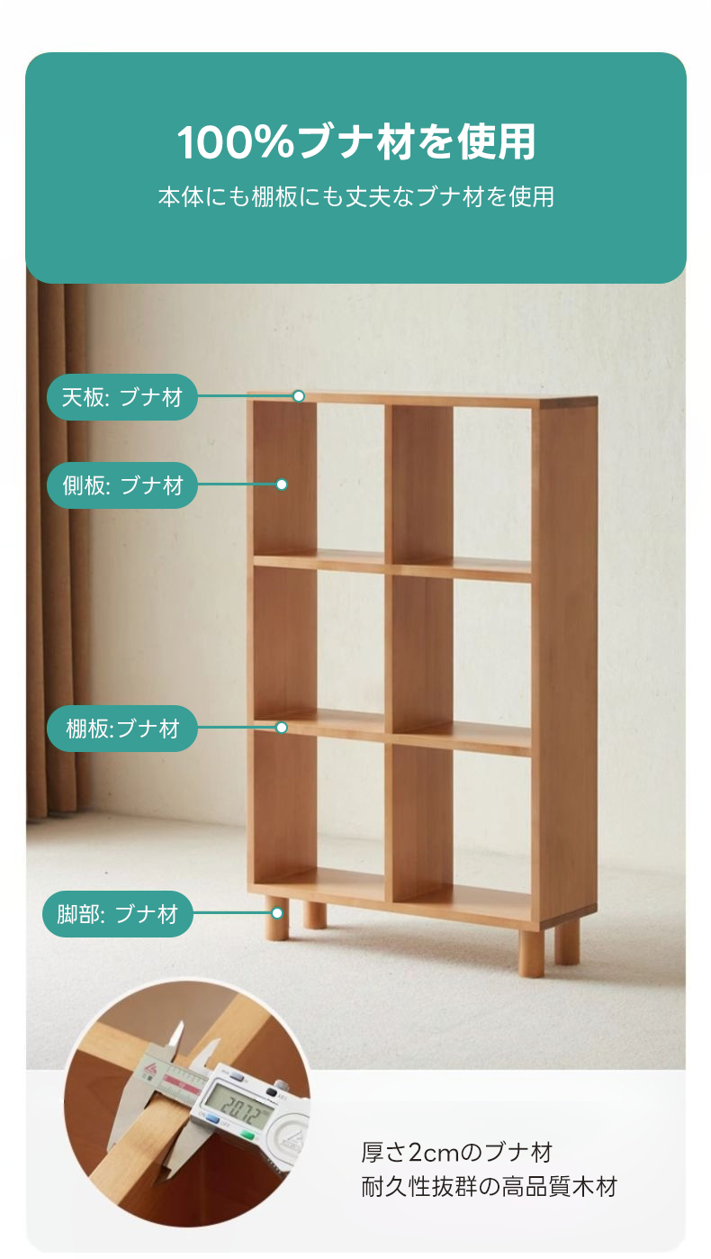 - 【ナチュラルなデザインと選べるサイズ】ナチュラルなライトブラウンの色合いがどんなインテリアにも調和します。低タイプ(2列、3列)と高タイプ(2列、3列)の4種類からお選びいただけます。
