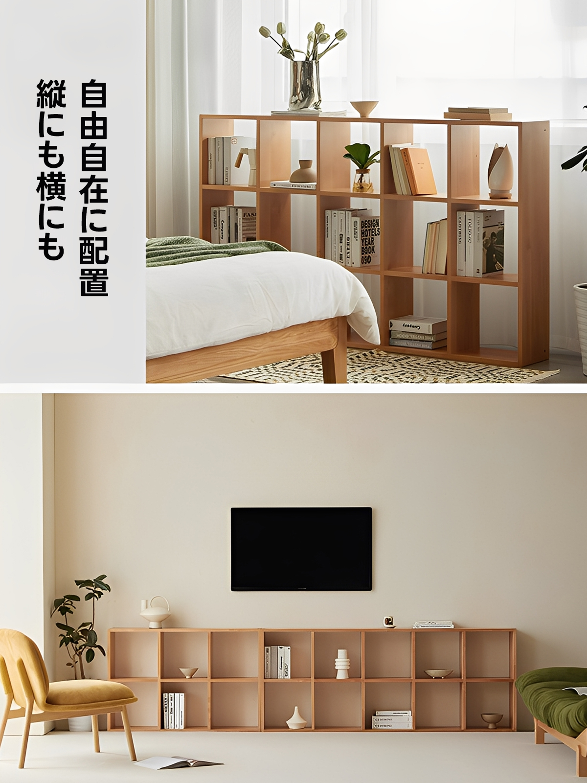 - 【自由な組み合わせと多用途性】縦にも横にも配置可能で、スペースに合わせた設置が可能です。脚部は取り外し可能で、スタイルチェンジも自由自在。本棚やマガジンラック、間仕切りやTVボードとしても活躍します。