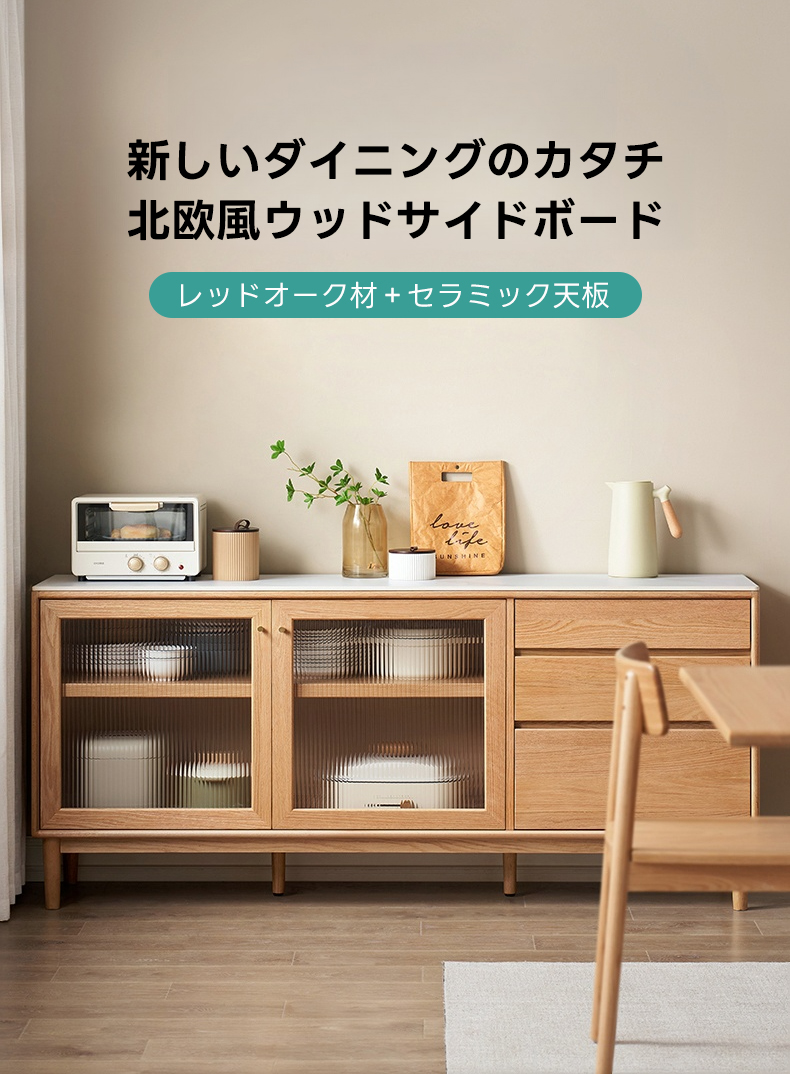 - 【シンプルで洗練されたデザイン】北欧風ウッドサイドボードは、シンプルで洗練されたデザインが特徴です。高品質な北米産レッドオーク材を使用し、ぬくもり溢れる木目が美しい仕上がりを実現しています。セラミック天板は耐熱性と耐傷性に優れ、お手入れも簡単で、日常使いに最適です。