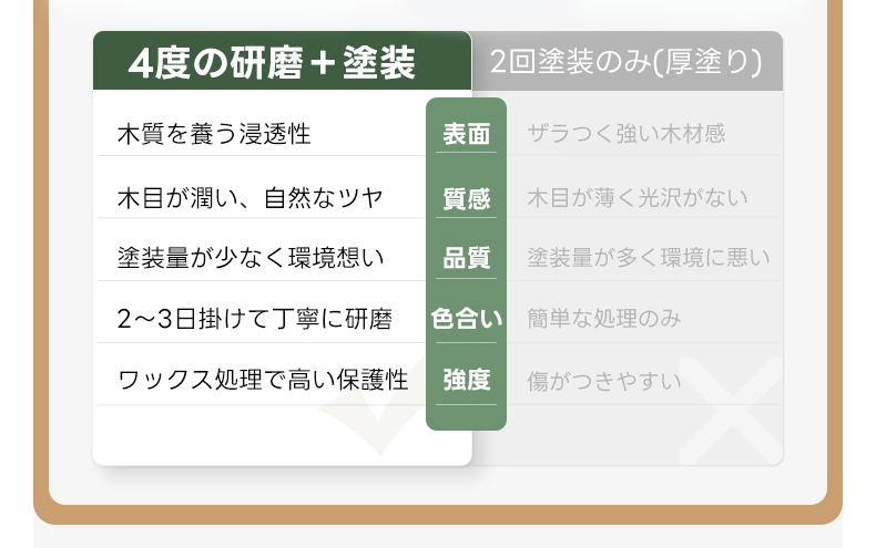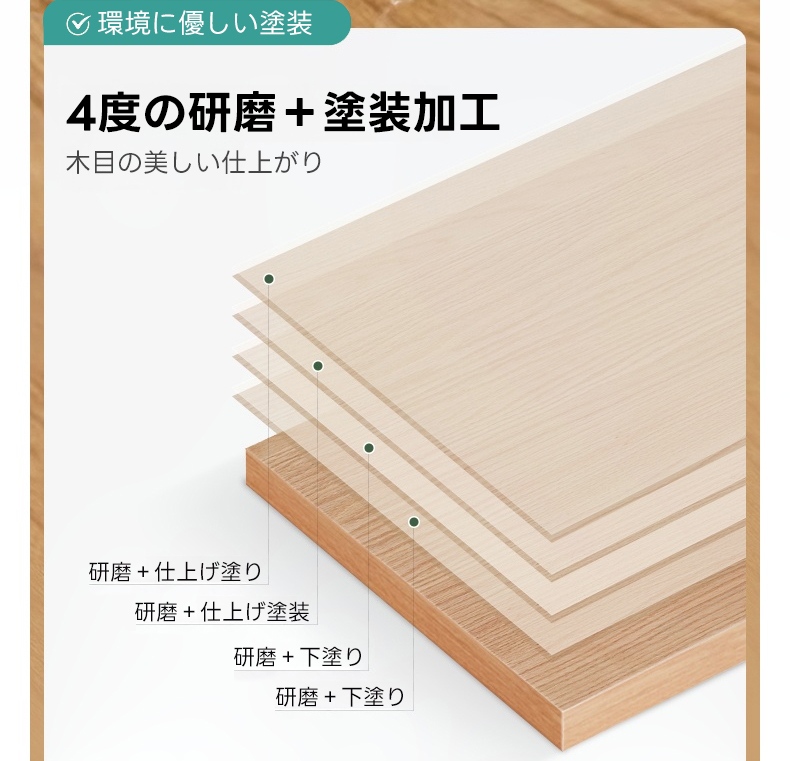 - 【安全設計と環境への配慮】転倒防止器具が付属し、お子様やご家族の安全を確保します。環境に優しい塗装が施され、4度の研磨と塗装加工により、自然なツヤと高い保護性を実現しています。安心して長くお使いいただける設計です。