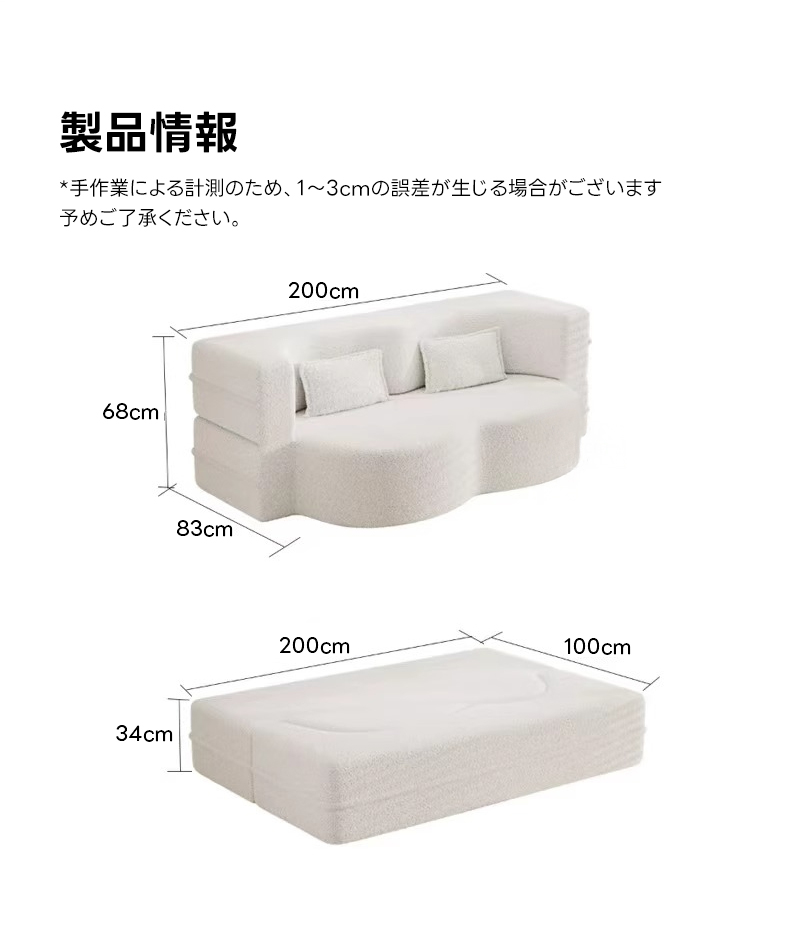 - 【多機能デザイン】クラウドラインソファベッドは、ソファとしてもベッドとしても使用可能な多機能デザインです。折りたたむことで簡単に形を変えられるので、リビングのスペースを有効活用できます。高密度ウレタンを使用しており、快適な座り心地を提供します。