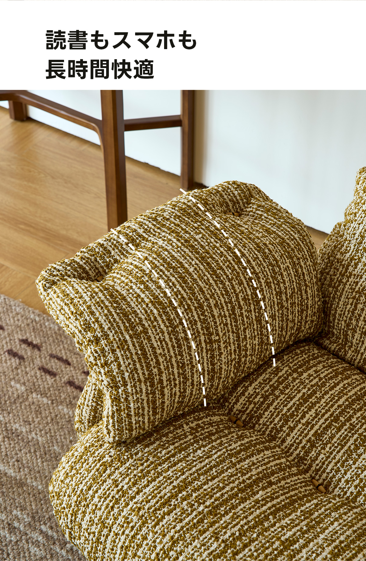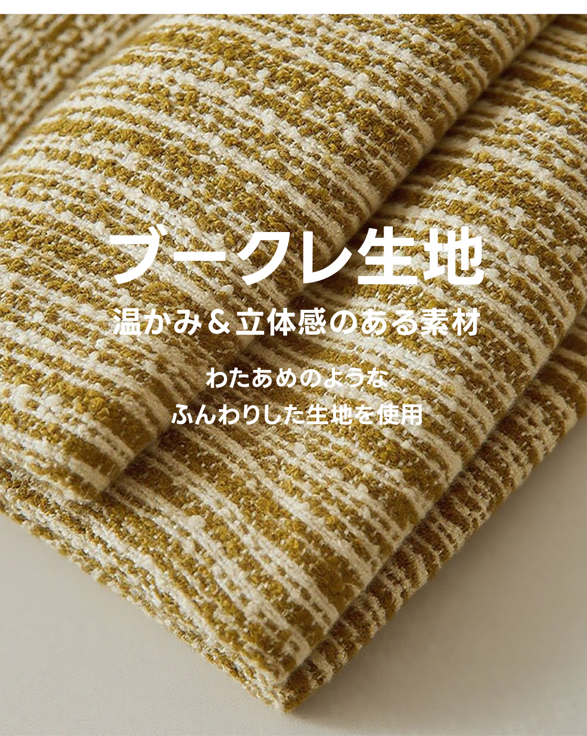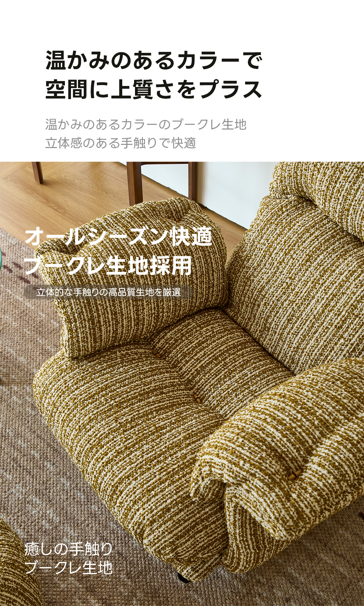 - 【高品質な材料とデザイン】温かみのあるカラーと立体感を持つブークレ生地を採用し、手触りが非常に快適です。高反発ウレタンとPP綿を使用した2層クッションがしっかりと体を支え、ふっくらとした座り心地を提供します。