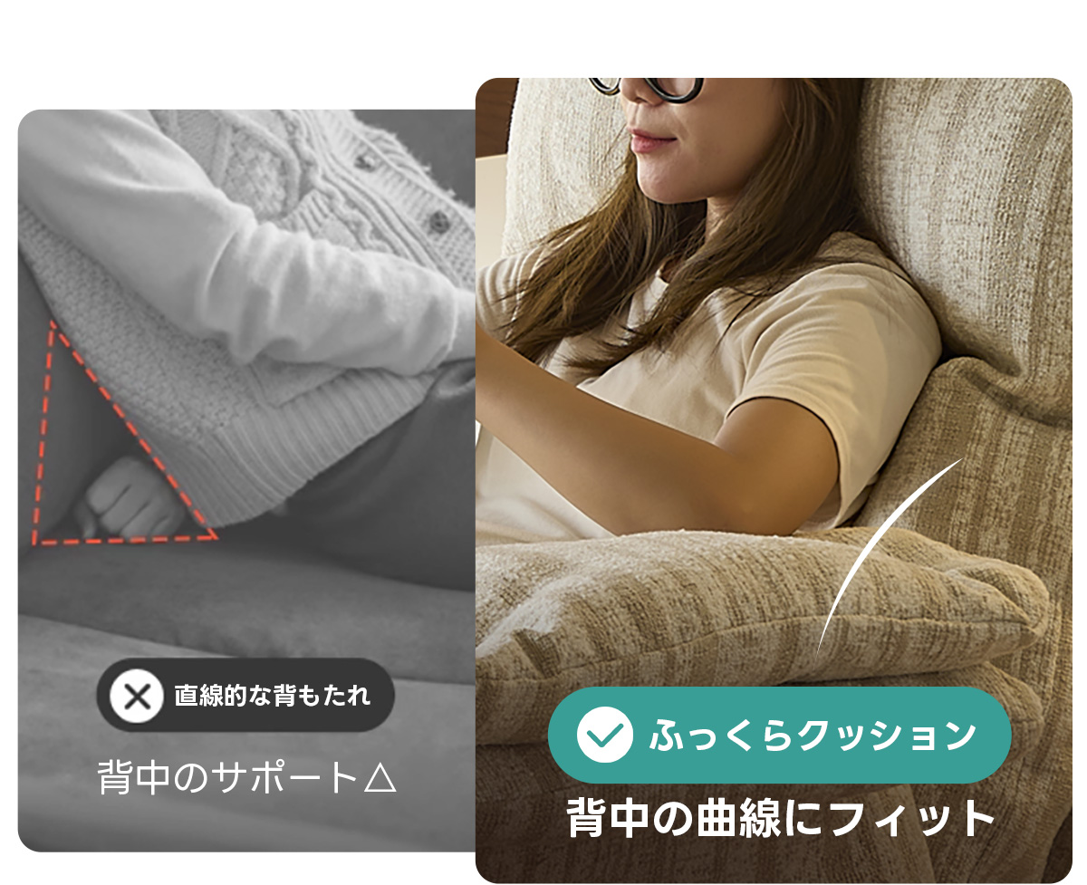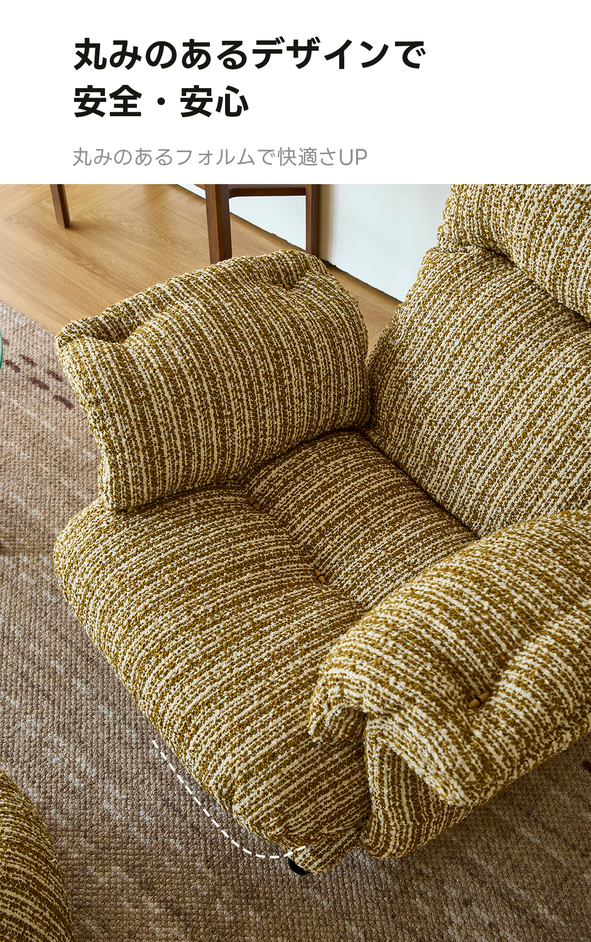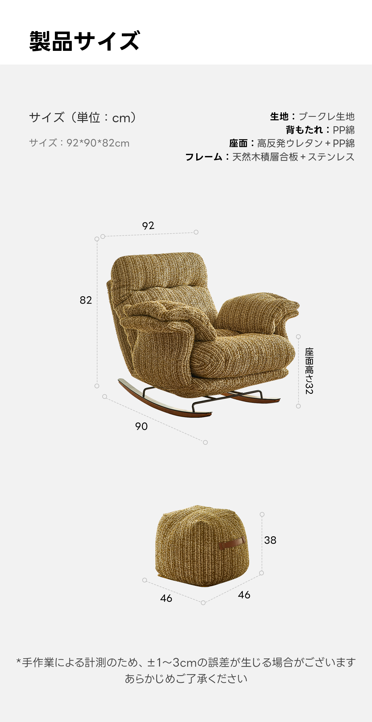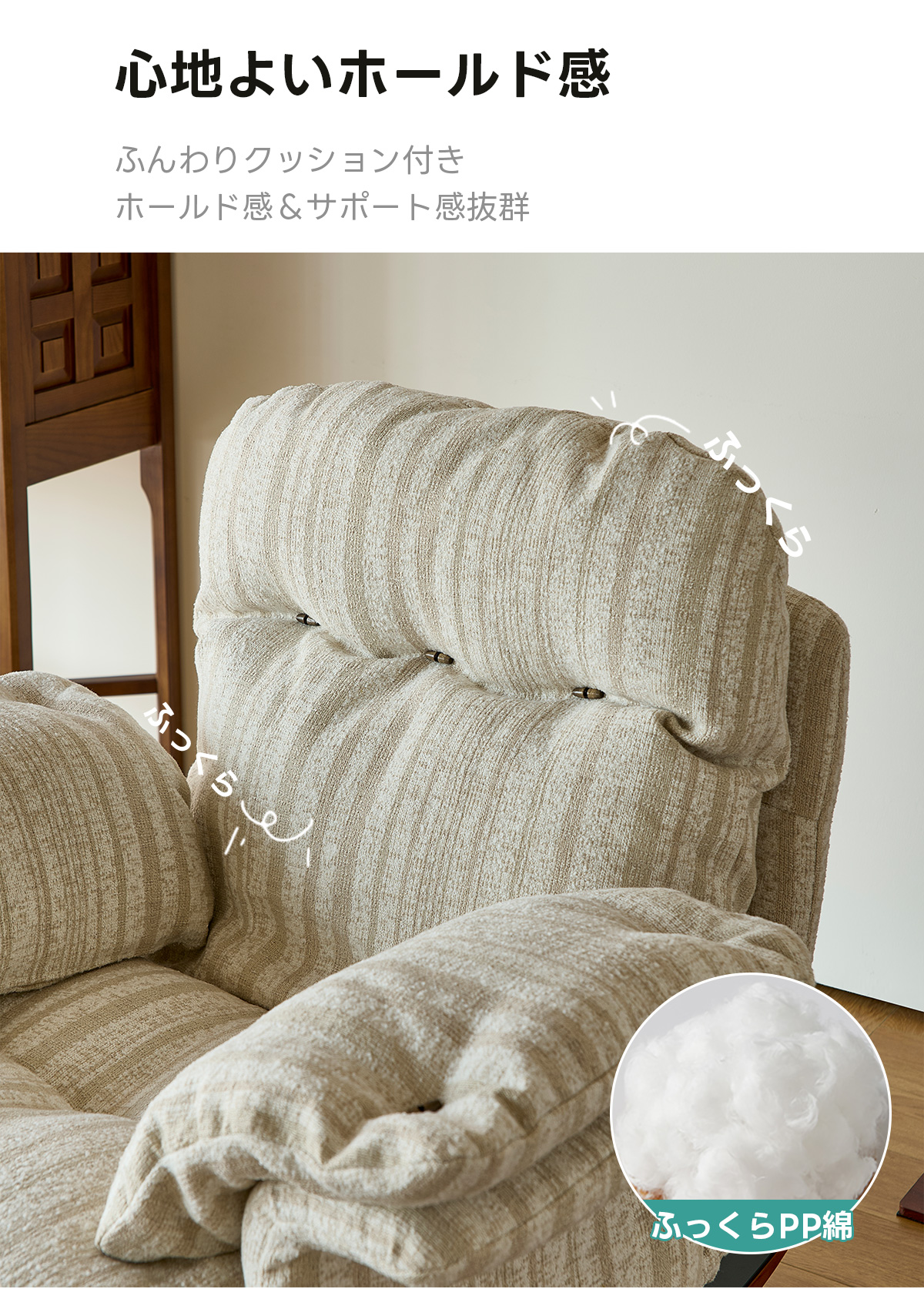 - 【高品質な材料とデザイン】温かみのあるカラーと立体感を持つブークレ生地を採用し、手触りが非常に快適です。高反発ウレタンとPP綿を使用した2層クッションがしっかりと体を支え、ふっくらとした座り心地を提供します。