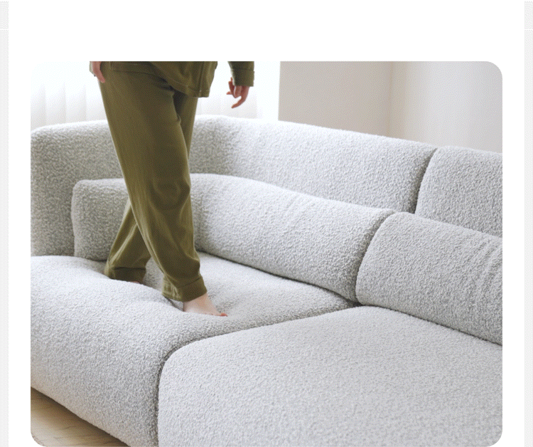 • 【耐水・防汚性に優れたブークレ生地】:液体の浸透を防ぎながらお手入れも簡単なブークレ生地を使用。ソファの内部には高反発ウレタンを使用し、体を優しく支えます。