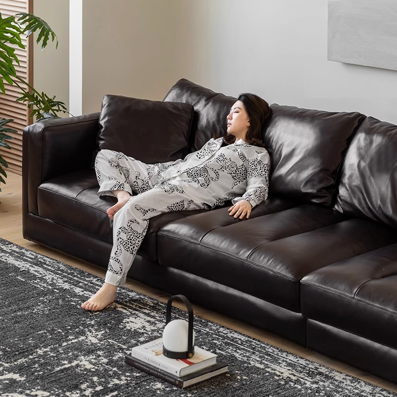 - 【高品質レザーで贅沢な座り心地】:プレミアムコンフォートレザーソファは、1.4~1.6mmの超厚手シボ加工仕上げのトップグレインレザーを使用し、通常の1.5倍の厚さでマットな質感と柔らかな触感を実現しています。日常のお手入れも簡単で、見た目も触り心地も優れています。
