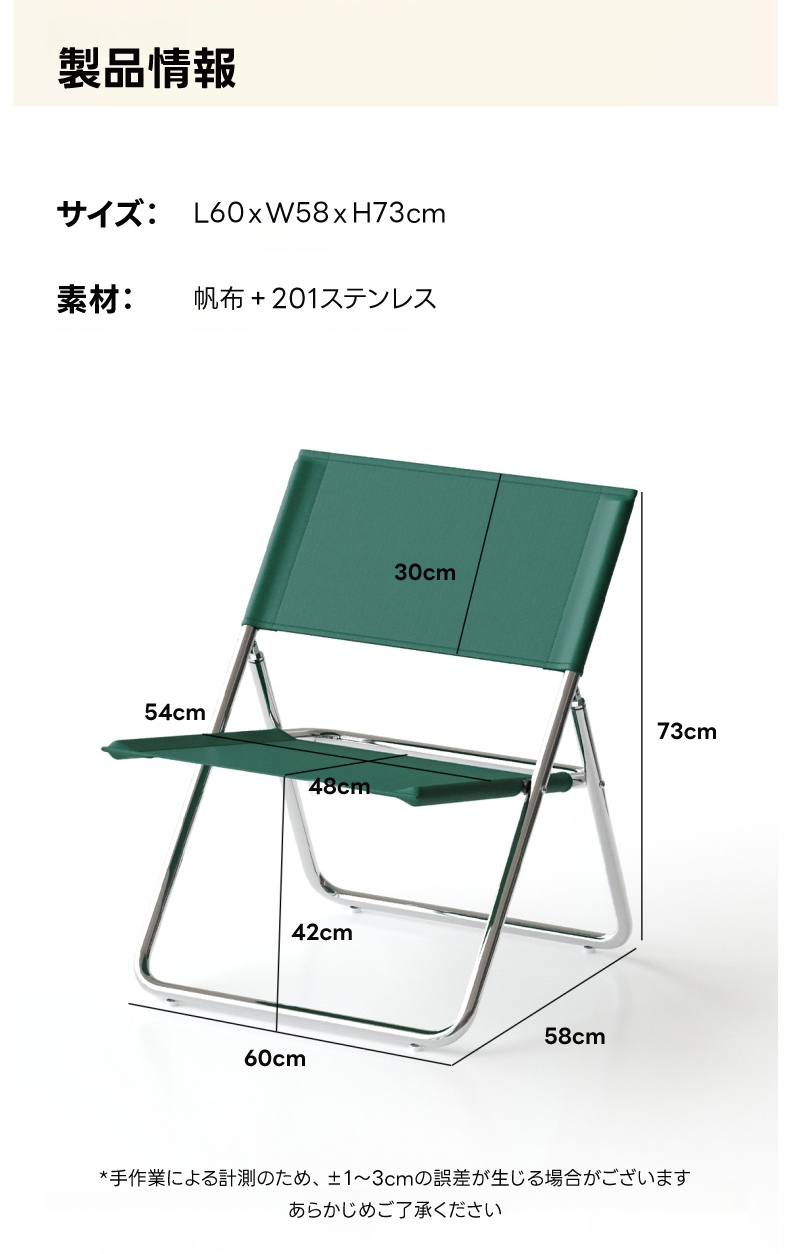 - 【高品質な素材と優れた耐久性】:頑丈な帆布と201ステンレスを使用し、耐久性に優れています。通気性の良い帆布素材は、長時間座っても快適な座り心地を提供します。背もたれのカーブデザインが自然な姿勢をサポートします。