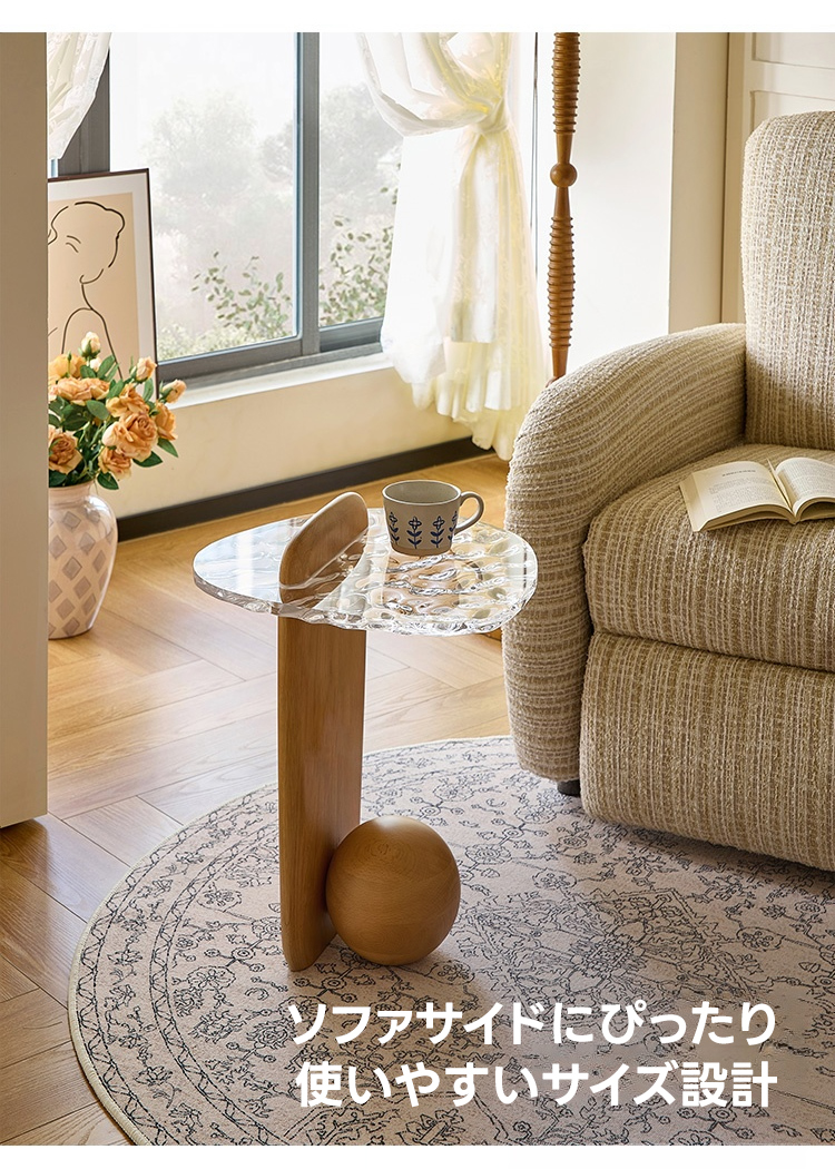 【大特価&在庫限り】波ガラスサイドテーブル