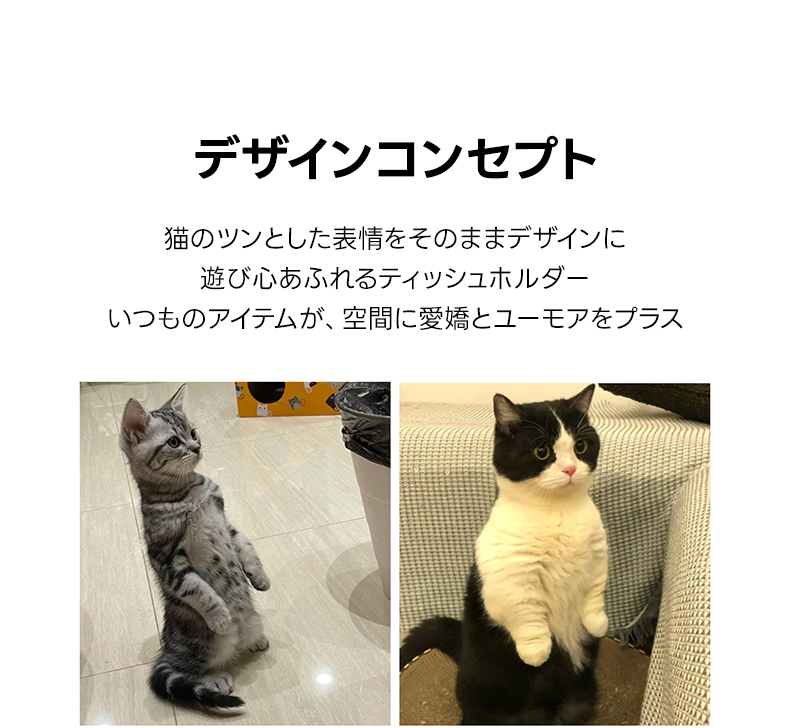 - 【ユニークなデザインで日常に楽しさをプラス】キャットティッシュホルダーは、猫の愛らしい表情をそのままデザインに取り入れたユニークなアイテムです。どんな空間にも愛嬌をもたらし、見るだけで心が和むオブジェとして、インテリア雑貨や贈り物に最適です。