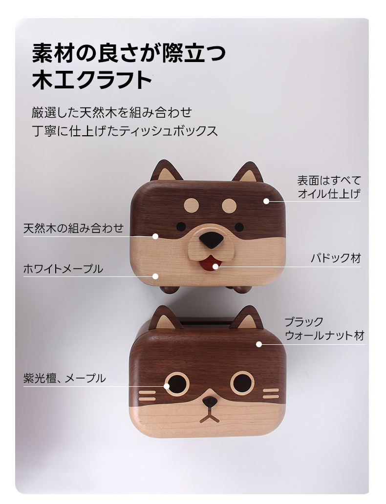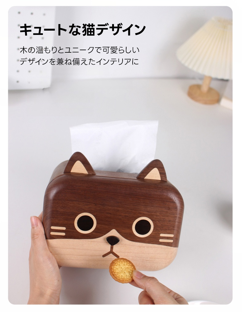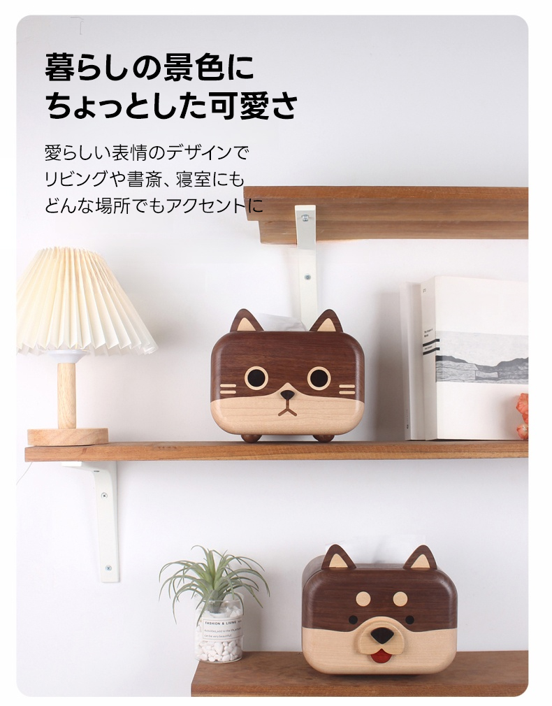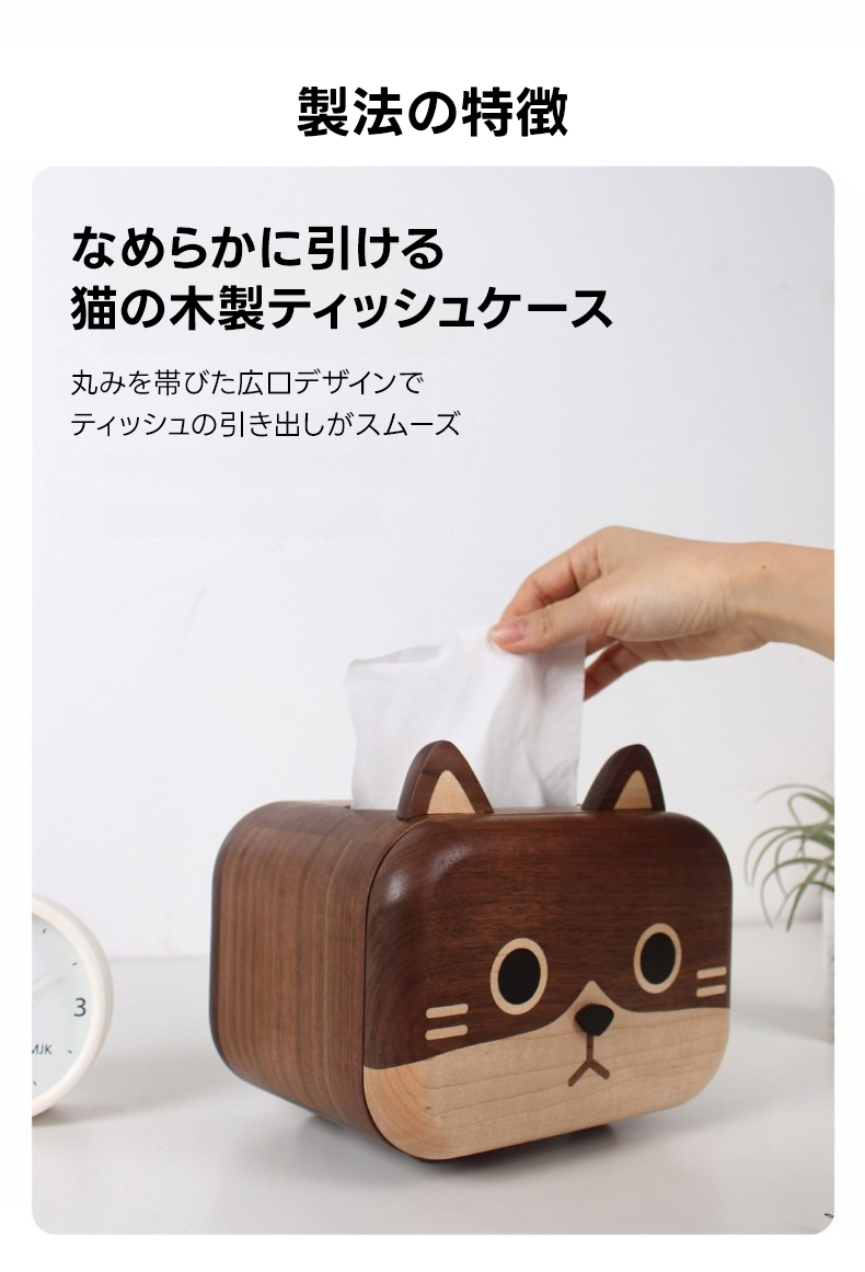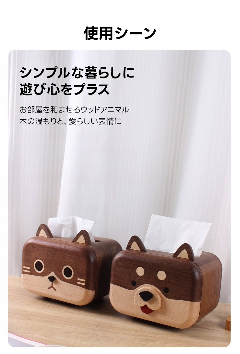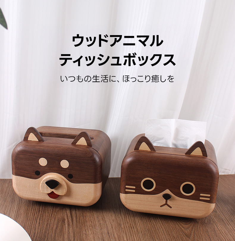 - 【ユニークなデザインと実用性】ウッドアニマルティッシュボックスは、かわいらしい猫と犬のデザインが特徴で、見るたびに心が和む表情を提供します。丸みを帯びた広口デザインにより、ティッシュの取り出しがスムーズで、実用性も兼ね備えています。