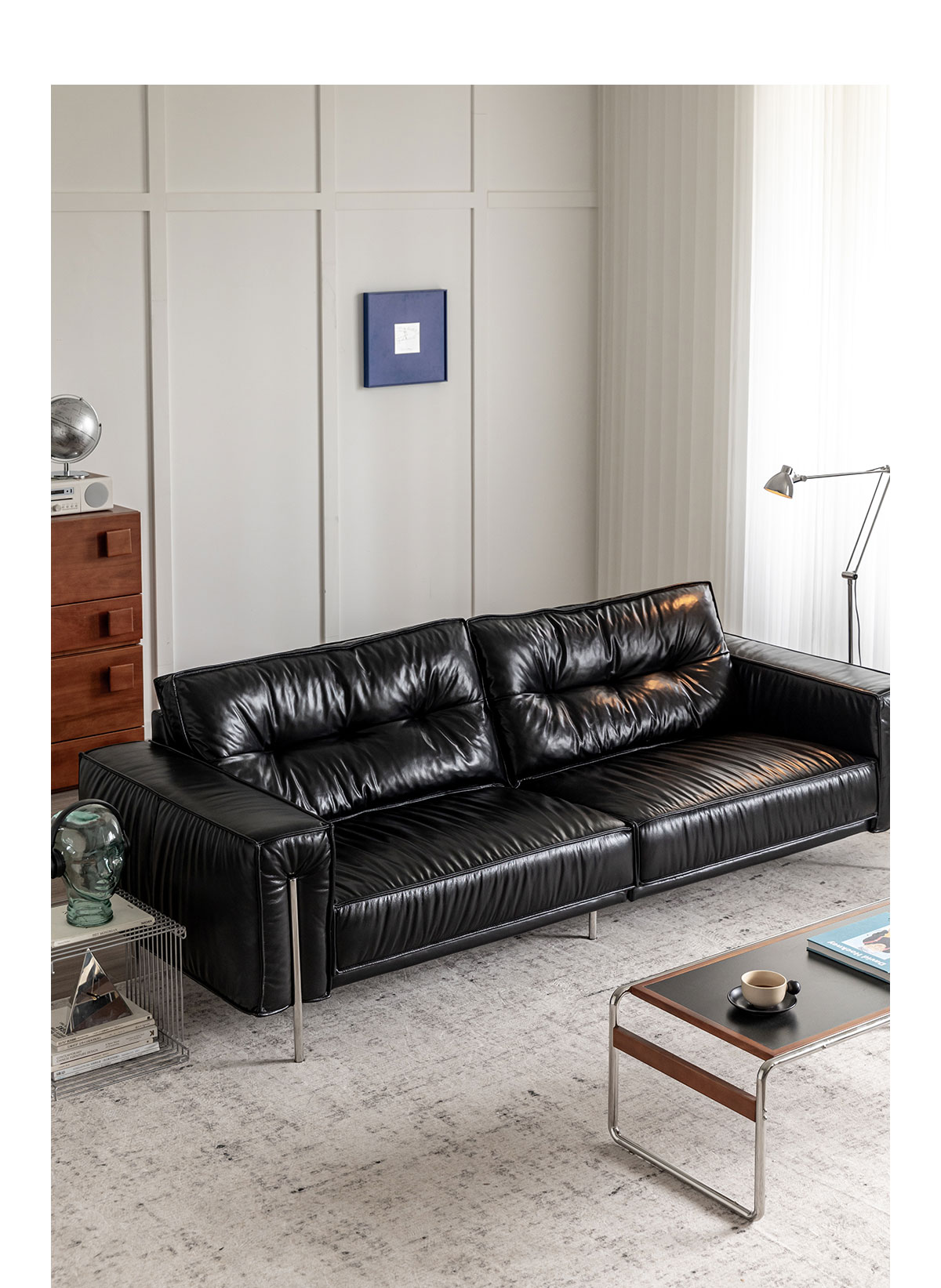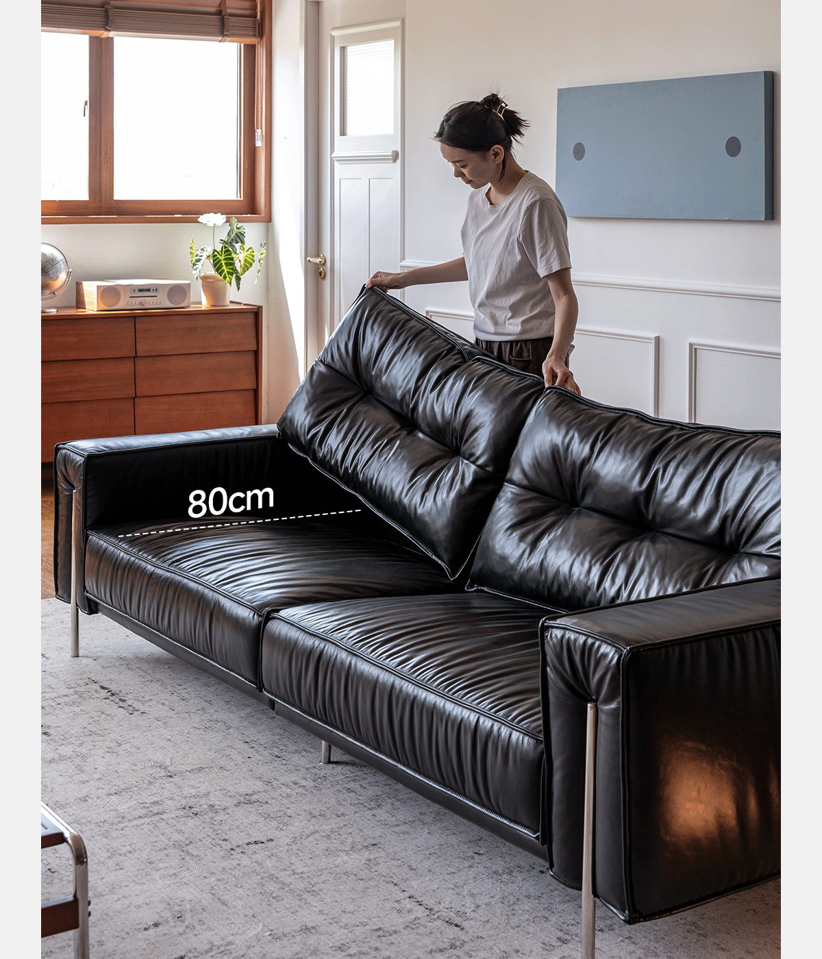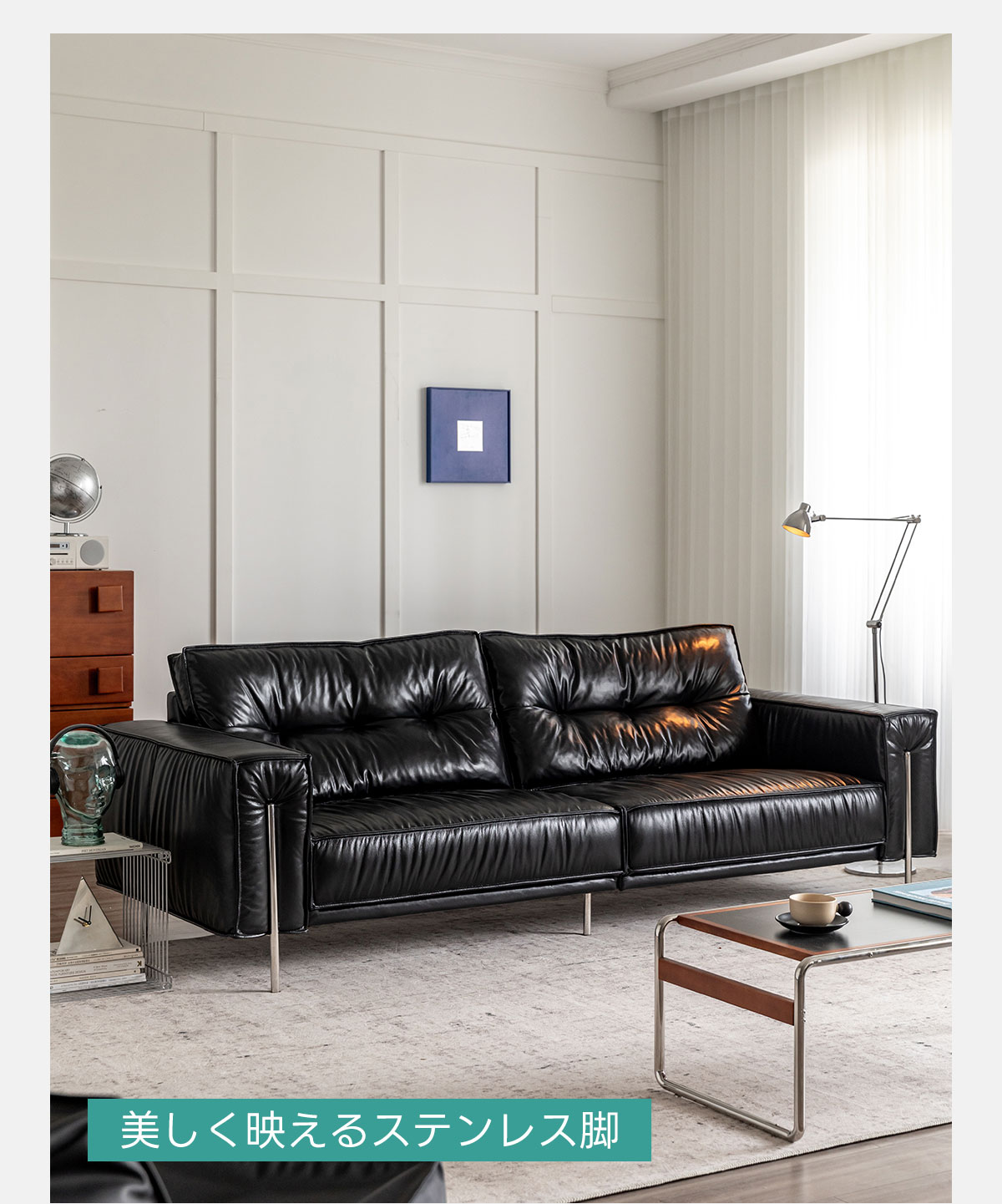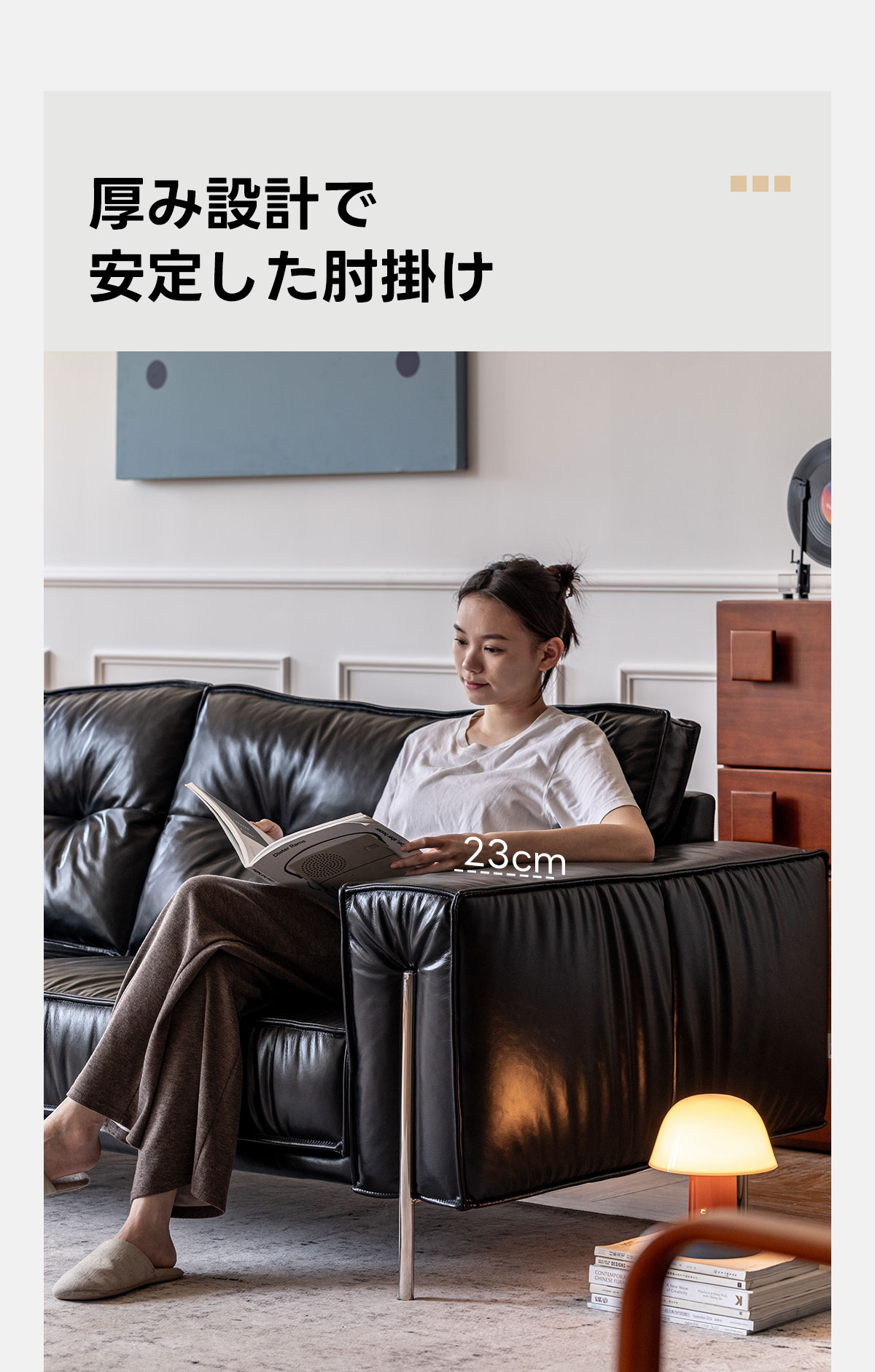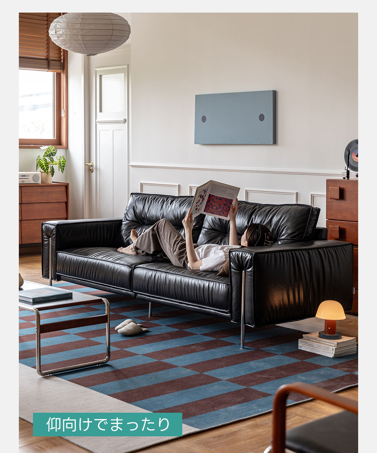 - 【快適な座り心地と高品質素材】アメリカ産のブライドルレザーを使用したモダンレザーソファは、3層構造のクッションで体圧を分散し、長時間座っても疲れにくい快適な座り心地を提供します。