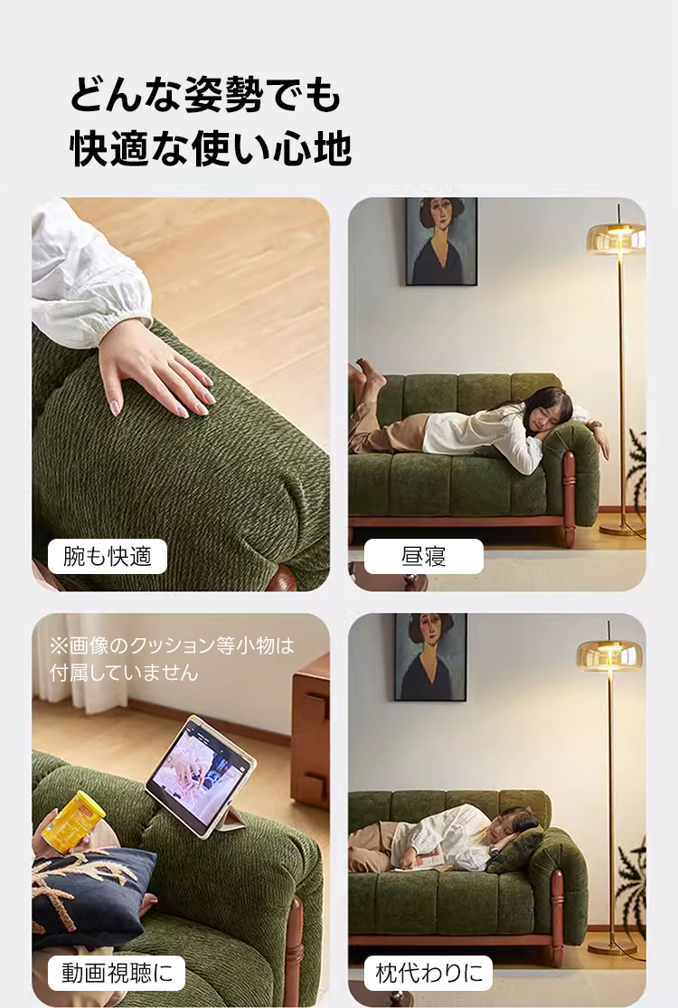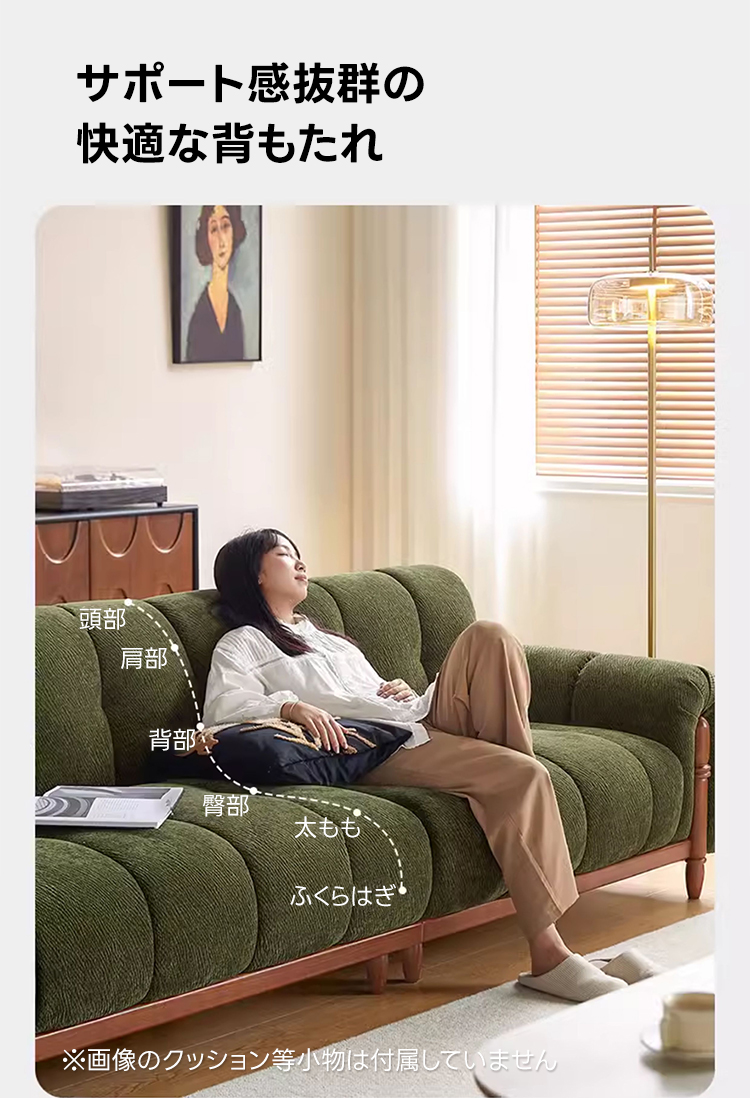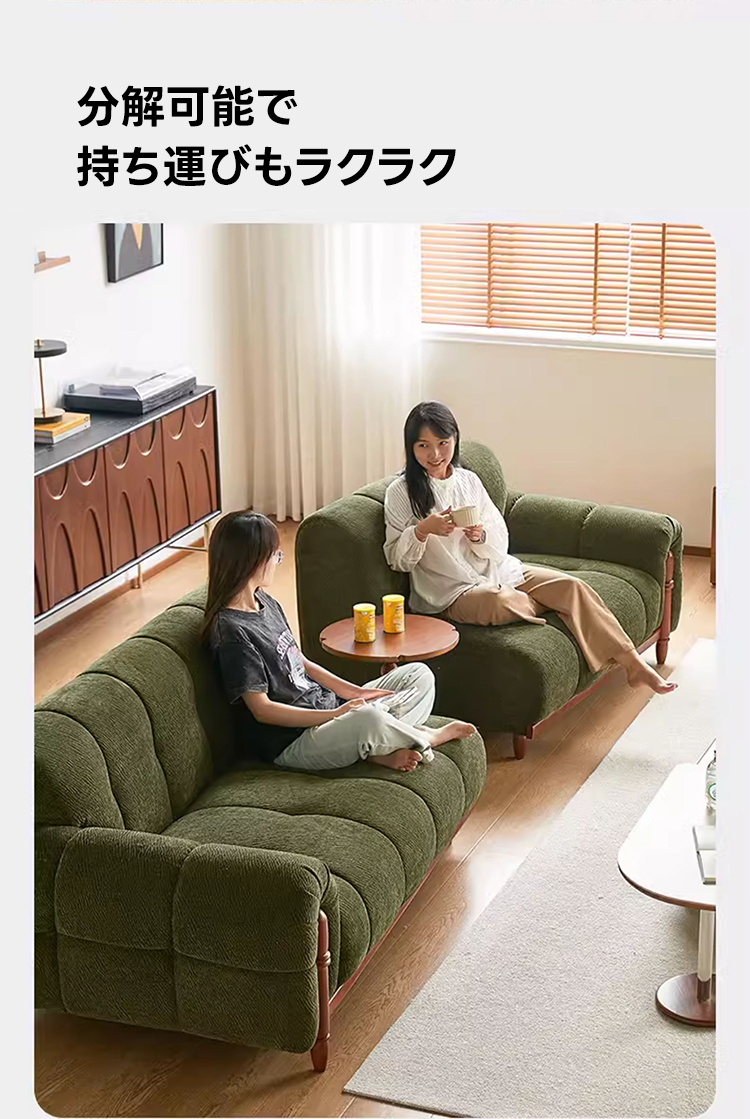 - 【高品質な素材と耐久性】フランネル生地を使用したソファは、柔らかく心地よい触り心地を提供します。ロシア産カラマツ材を使用した頑丈な木製フレームと4mmのマンガン鋼Sバネがしっかりとした構造を実現し、耐荷重性に優れています。