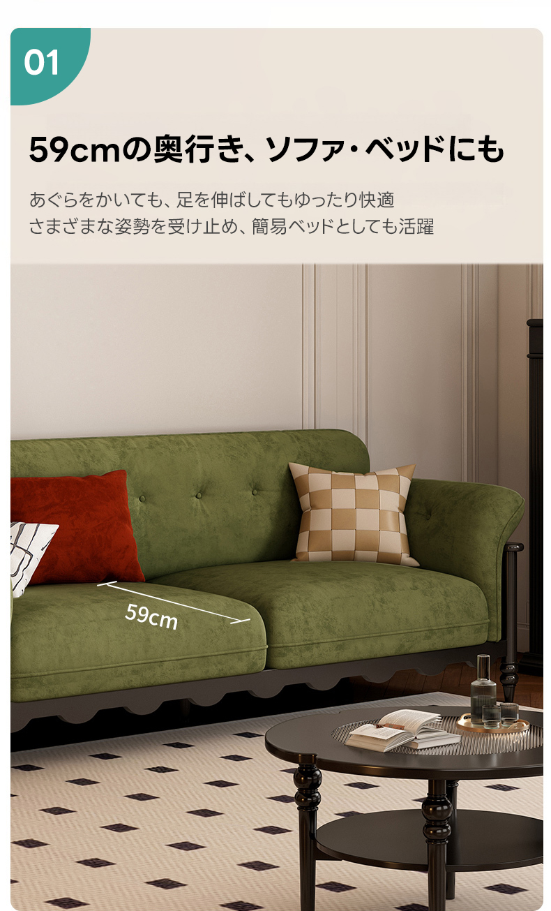 - 【快適な座り心地と多用途】:59cmの奥行きで、リラックスした姿勢をサポートします。高反発クッションが体を優しく支え、長時間座っても疲れにくい設計です。ソファとしてだけでなく、簡易ベッドとしても利用可能です。