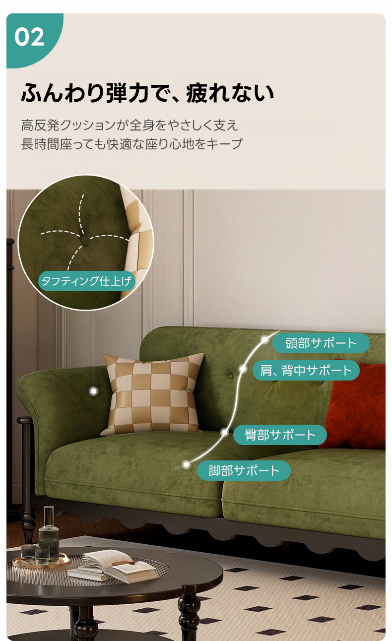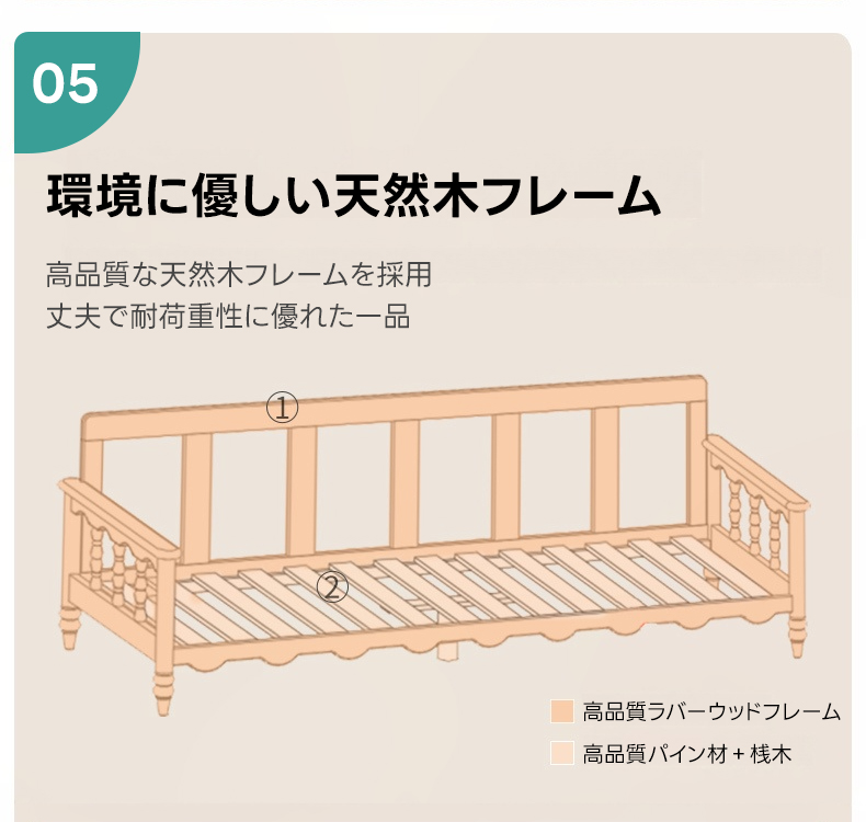 - 【耐久性と環境配慮】:高密度ウレタンを使用し、長時間の使用でもへたりにくいです。自然木フレームを採用し、耐荷重性と長持ちする耐久性を備えています。タイ産の高品質ラバーウッドとロシア産カラマツを使用し、環境に配慮した素材選びがされています。