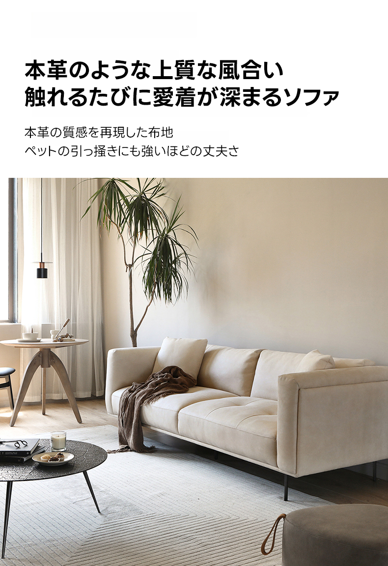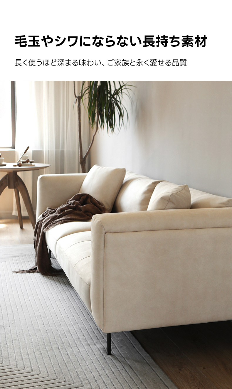- 【多様なリビングシーンに対応】シンプルモダンなデザインとアイボリーカラーの合皮がどんなインテリアにもマッチし、カップルやファミリーのリビングに最適です。大型サイズでゆったりとした空間を提供します。