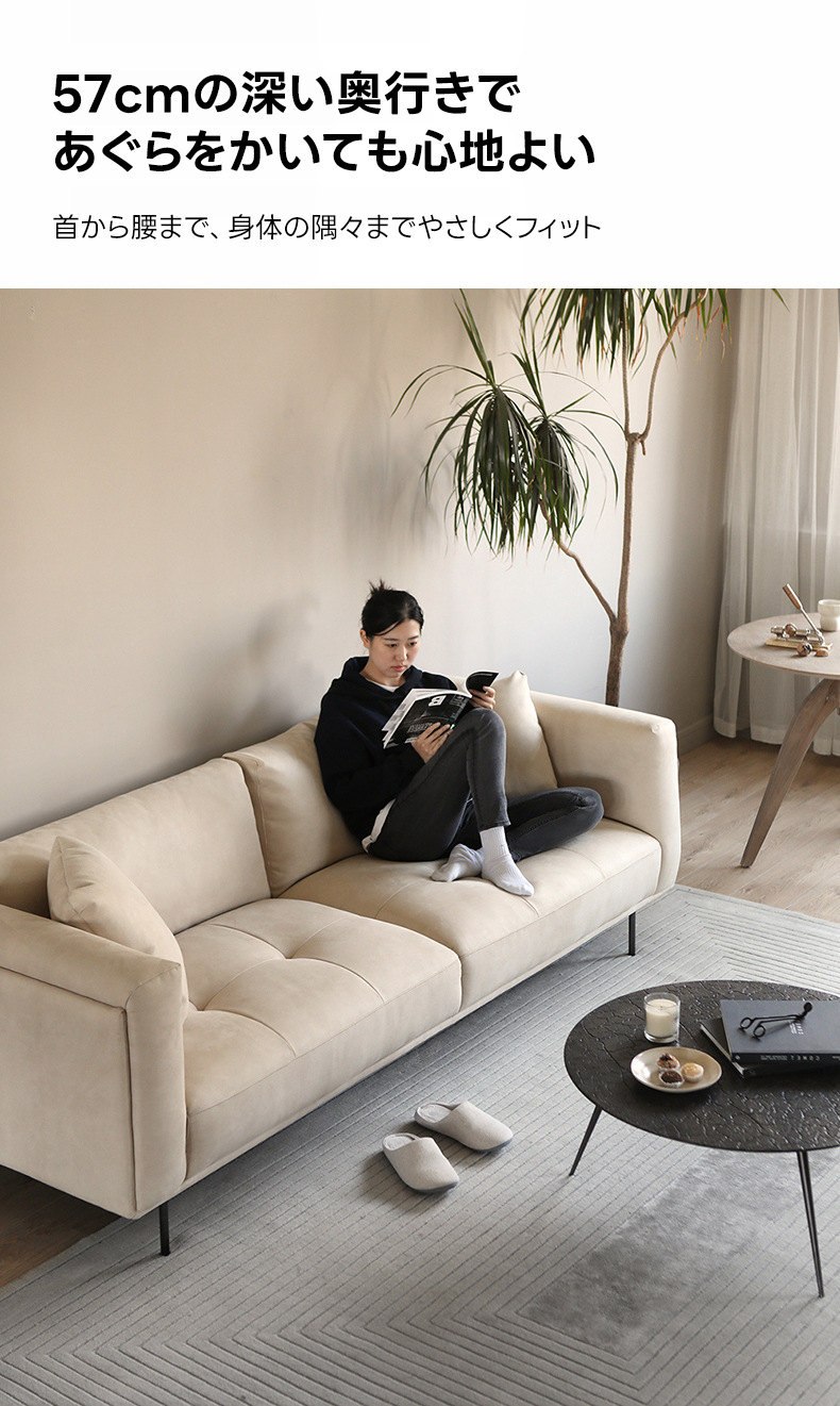 - 【快適な座り心地と機能性】このソファは、57cmの深い座面とダウン+PP綿+高密度ウレタンのクッションを採用し、長時間座ってもへたりにくく快適です。セパレート設計により、搬入や模様替えも簡単に行えます。