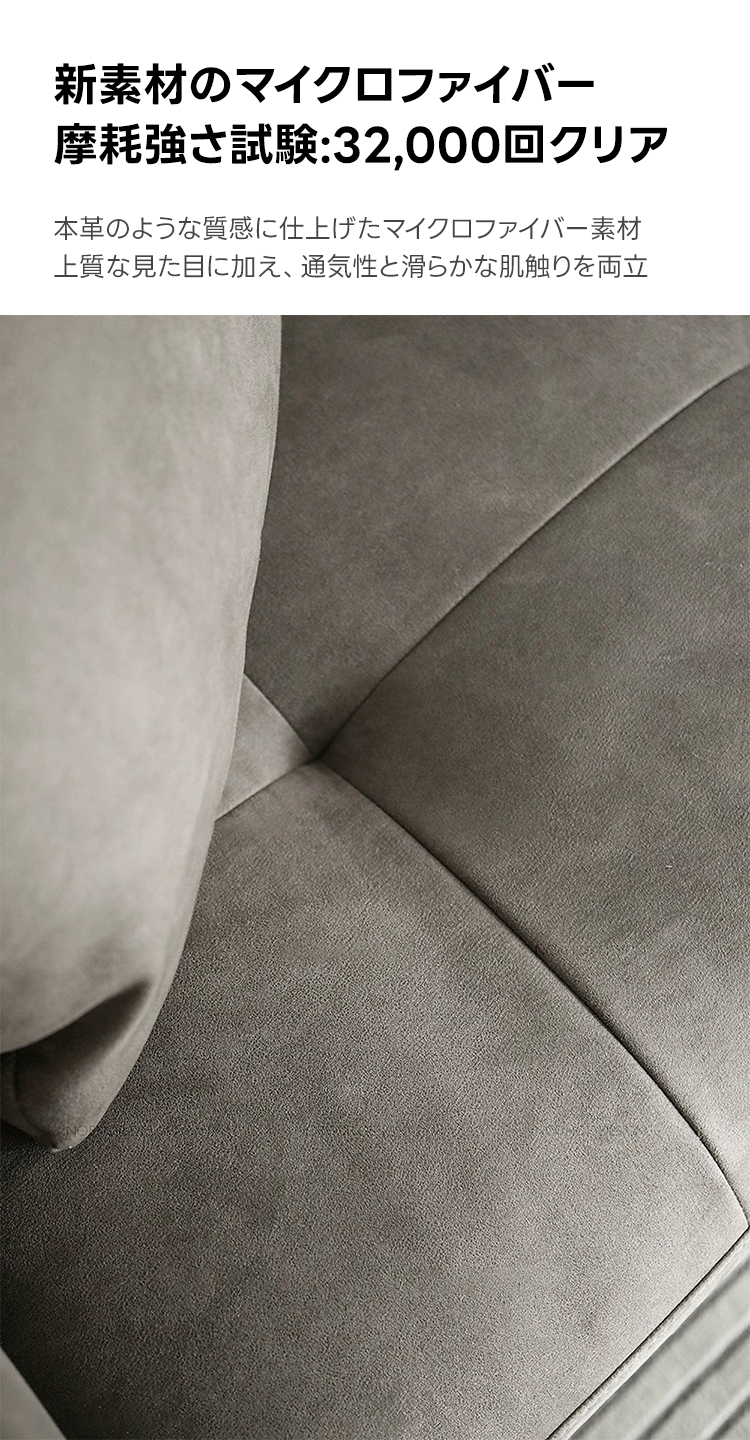 - 【高品質な素材とデザイン】:マイクロファイバー素材は本革のような質感を持ち、32,000回の摩耗強度試験をクリアしています。撥水加工が施されており、飲み物をこぼしてもサッと拭き取るだけでシミになりにくいです。