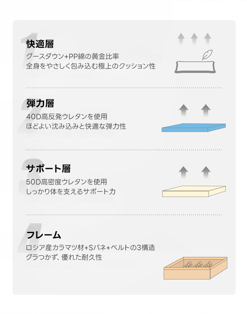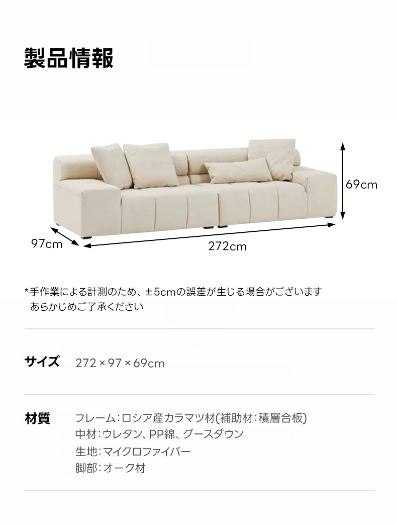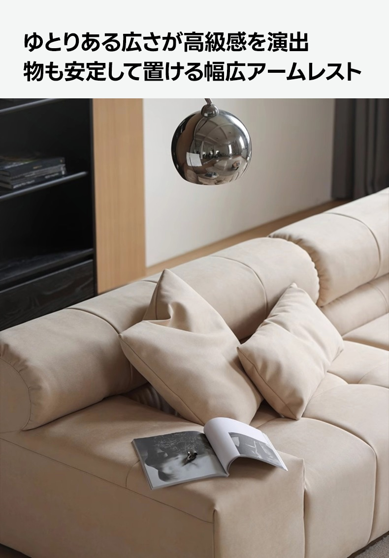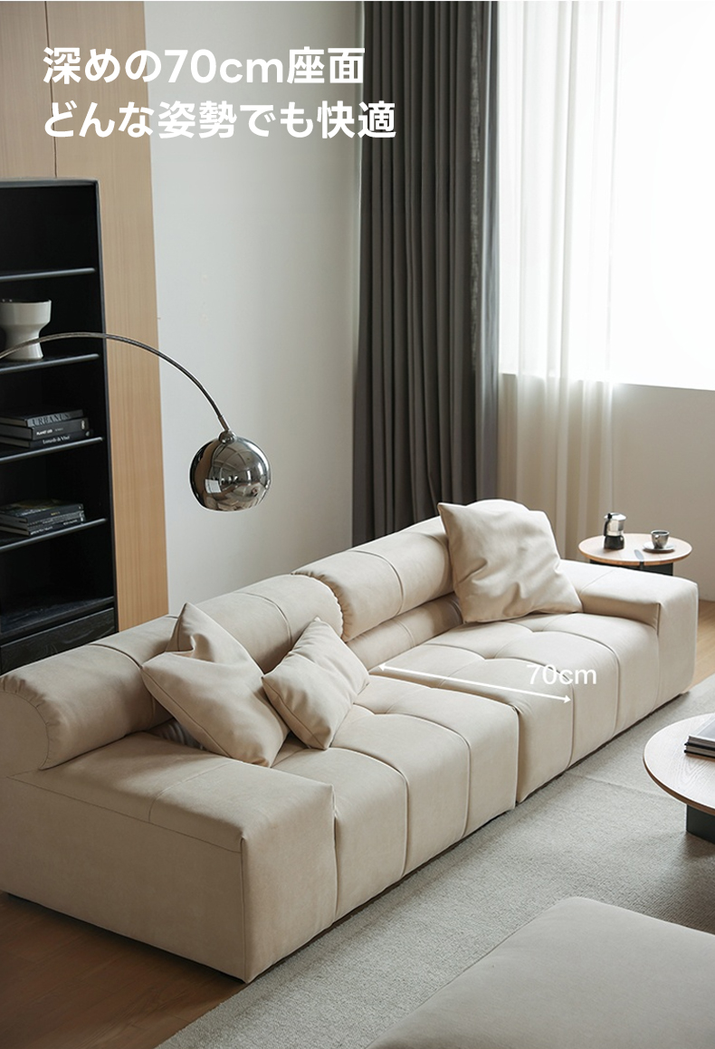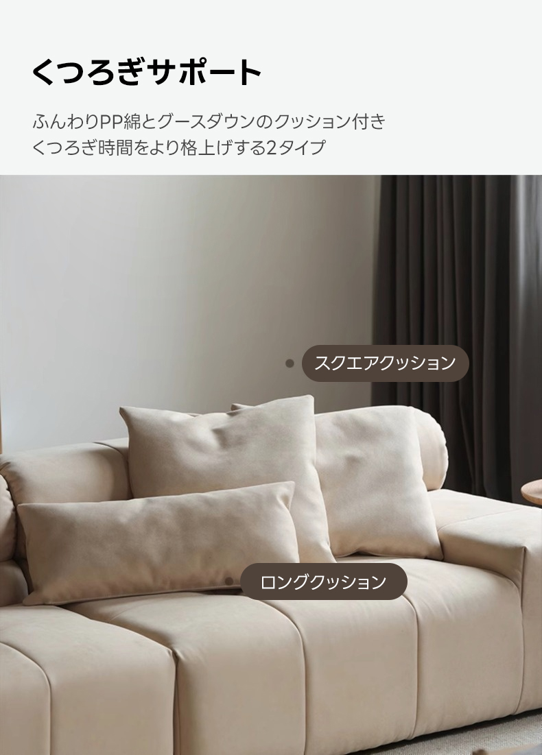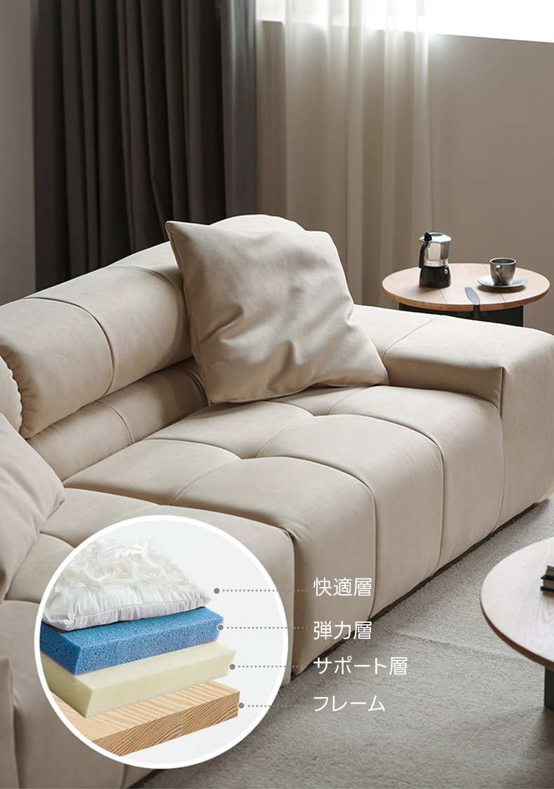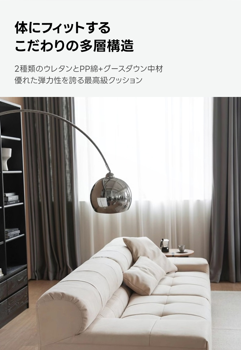 - 【快適な座り心地を実現するクラウドコンフォートソファ】:広々とした座面と多層構造のクッションが、どんな姿勢でも快適な座り心地を提供します。ウレタンとPP綿、グースダウンを組み合わせたクッションは優れた弾力性を持ち、長時間の使用でも疲れにくい設計です。