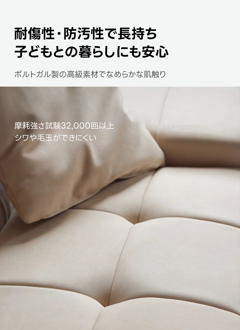 - 【高品質な素材と耐久性】:フレームにはロシア産カラマツ材を使用し、耐久性に優れています。生地は高級感のあるマイクロファイバーで、肌触りが非常に滑らかです。ポルトガル製の高級素材を使用し、耐傷性・防汚性に優れ、摩耗強度試験32,000回以上をクリアしています。
