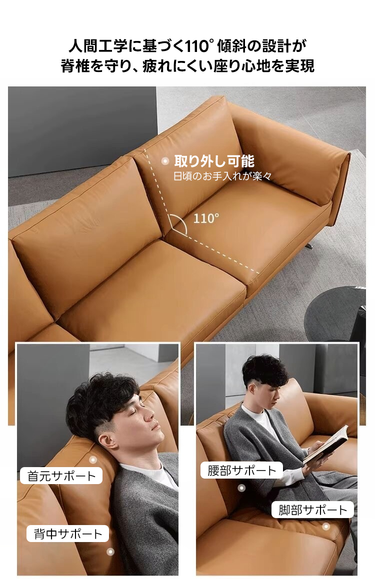 - 【スタイリッシュなデザインと快適な座り心地】イタリアンモダンデザインソファは、リビングをスタイリッシュに演出するための理想的な選択です。110°の傾斜設計により、背骨をサポートし、長時間座っても疲れにくい快適な座り心地を提供します。
