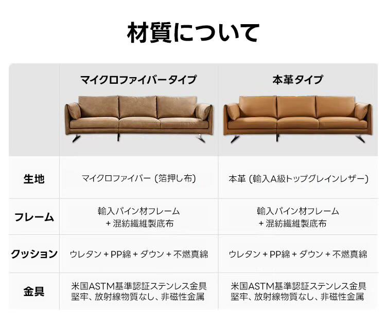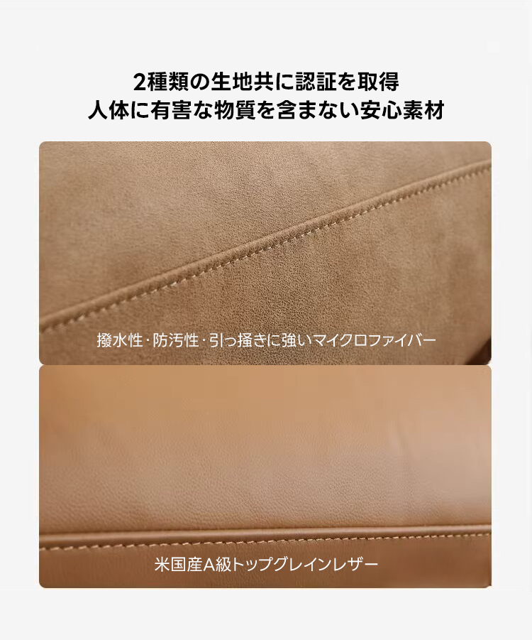 - 【多様な素材選択と撥水性】マイクロファイバータイプは撥水性と防汚性に優れ、ペットのいる家庭でも安心して使用できます。本革タイプは輸入A級トップグレインレザーを使用し、柔らかで高級感あふれる質感を提供します。