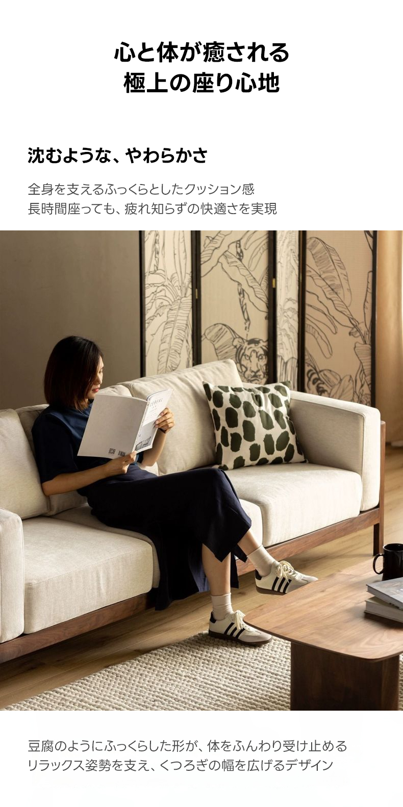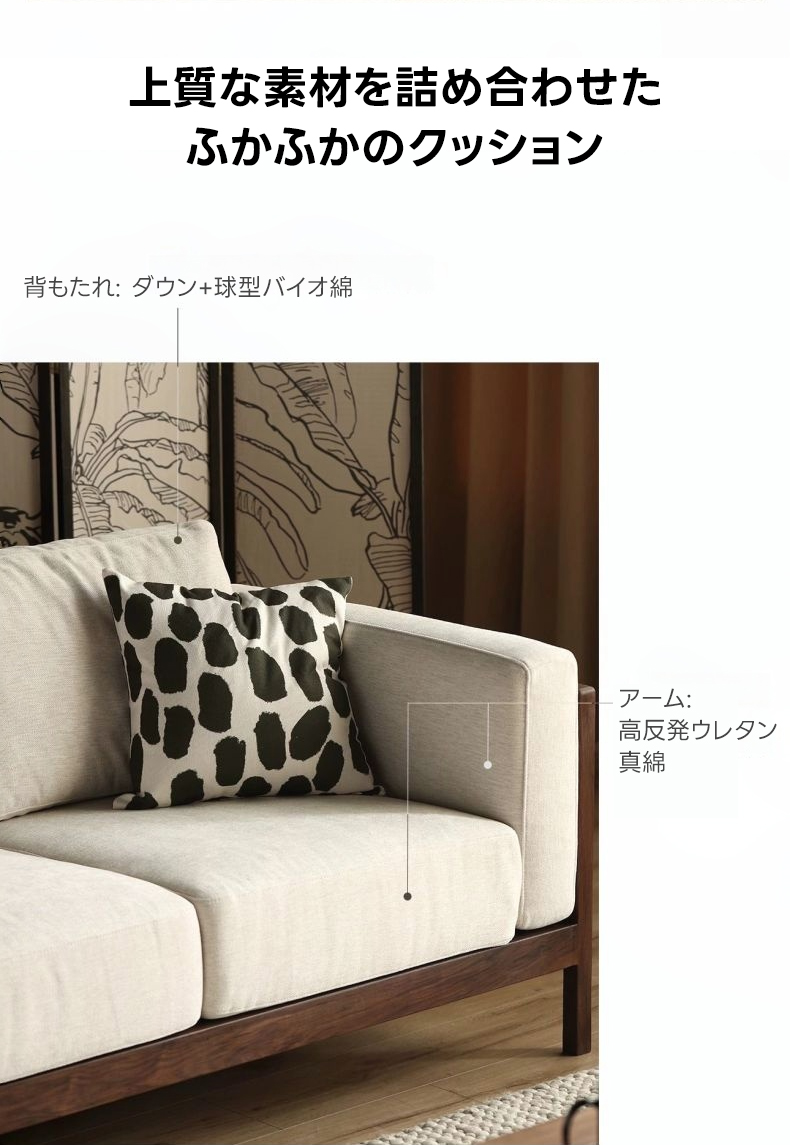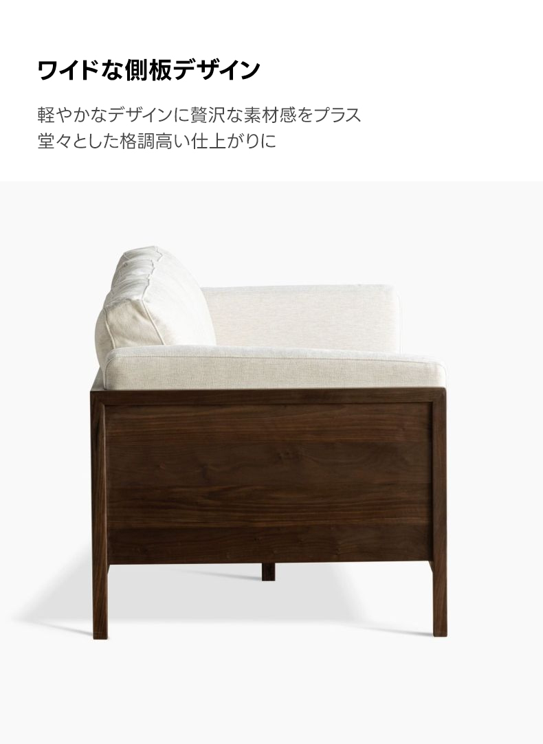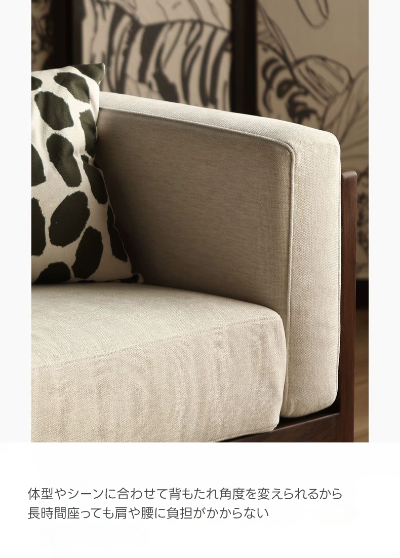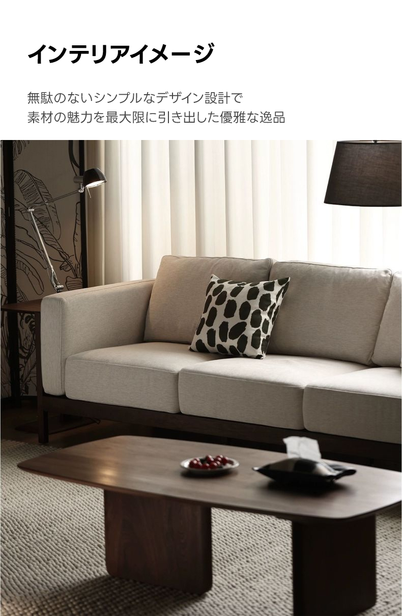 - 【洗練されたデザインと高品質素材】:ブラックウォールナット材を使用したミニマルモダンソファは、リビングに上品で風格ある雰囲気を演出します。ナチュラルな色合いがどんなインテリアにもマッチし、シンプルでありながら高級感を感じさせます。