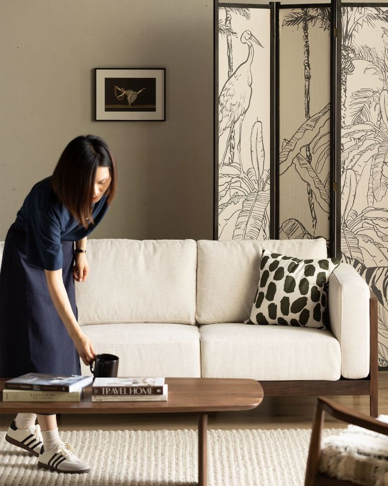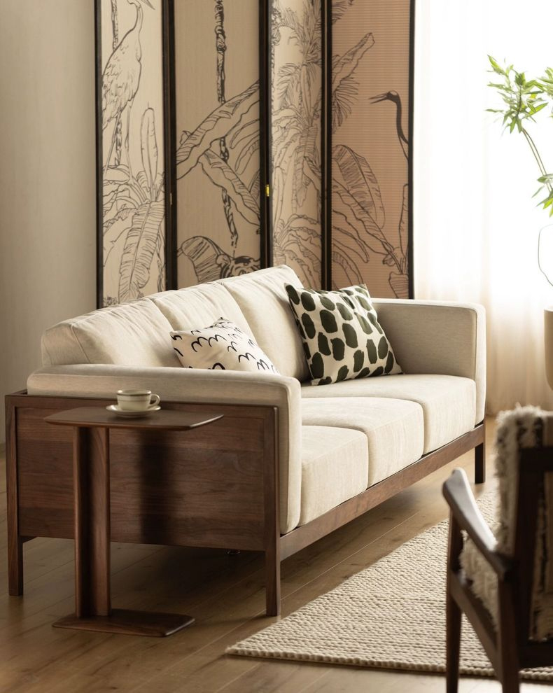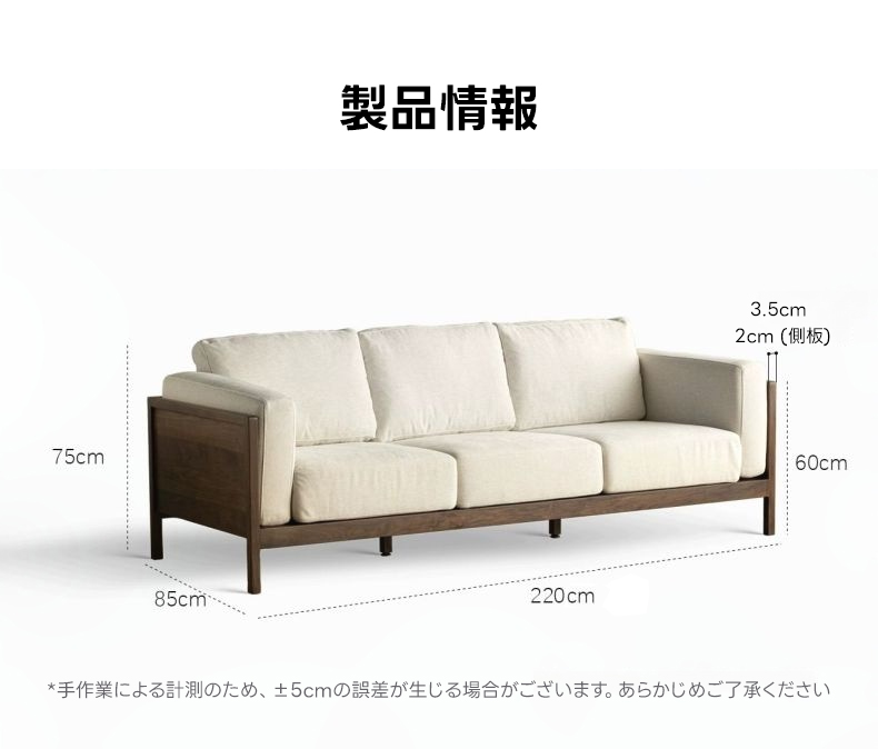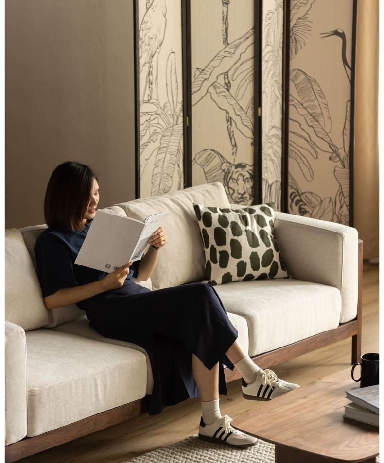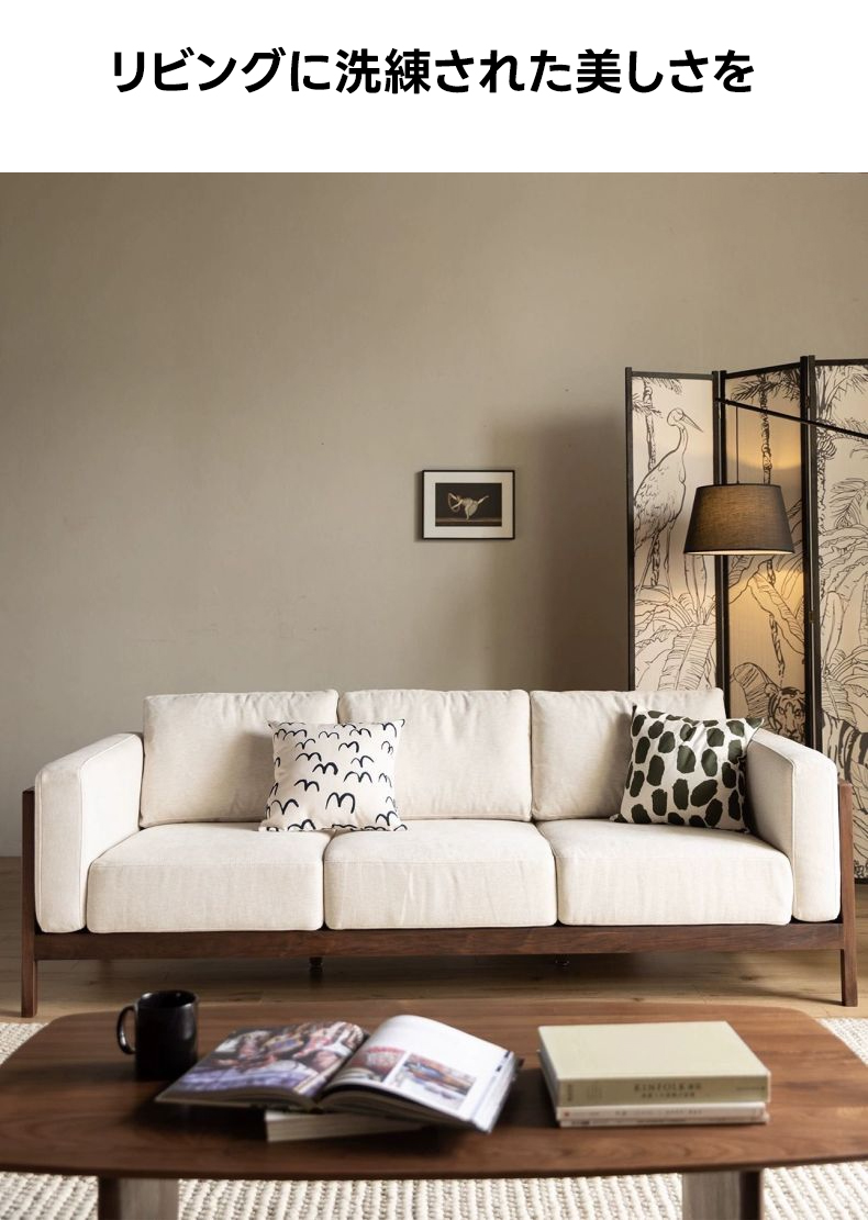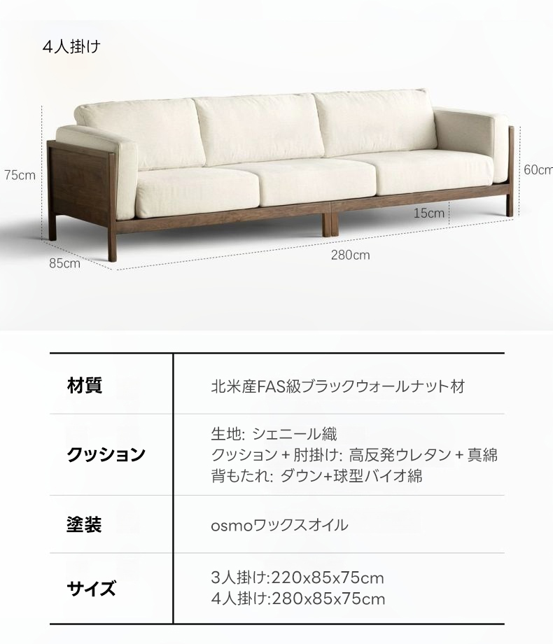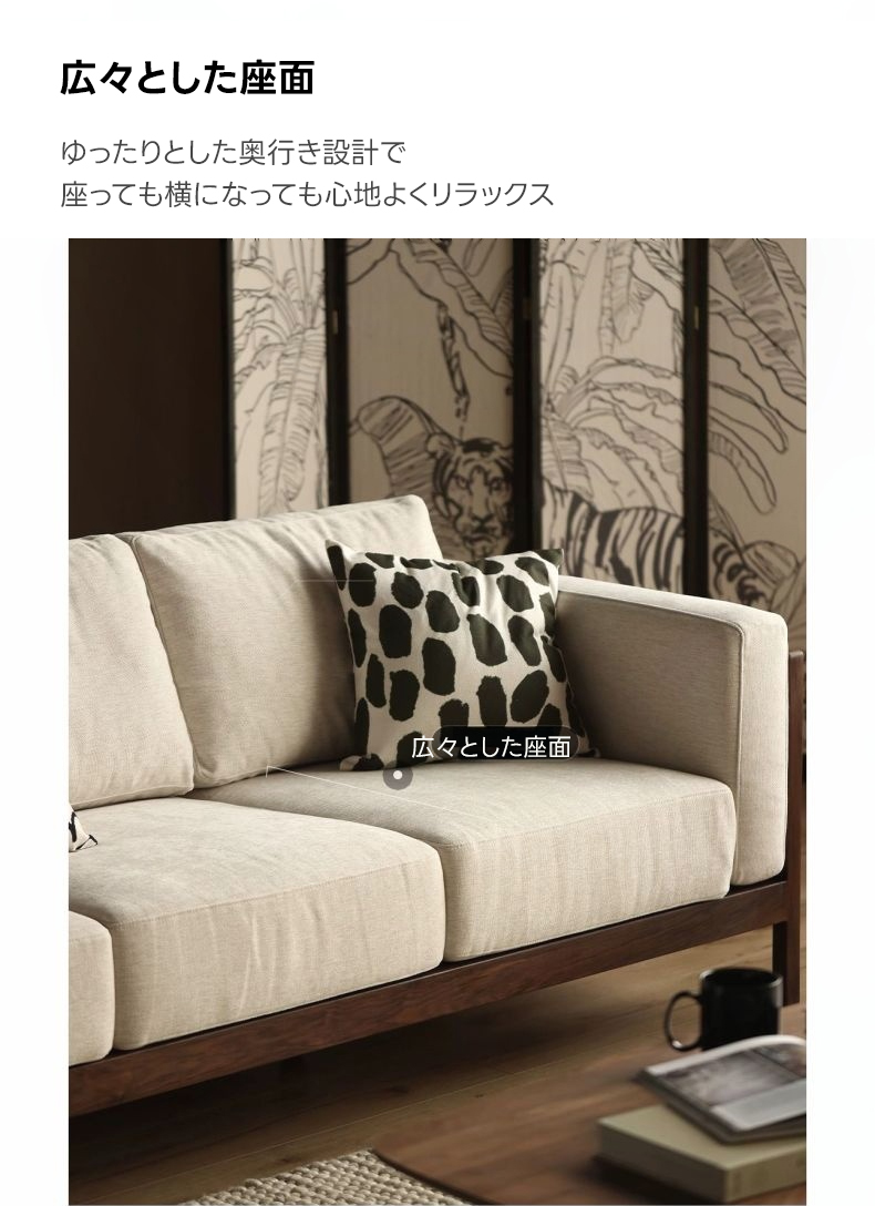 - 【洗練されたデザインと高品質素材】:ブラックウォールナット材を使用したミニマルモダンソファは、リビングに上品で風格ある雰囲気を演出します。ナチュラルな色合いがどんなインテリアにもマッチし、シンプルでありながら高級感を感じさせます。