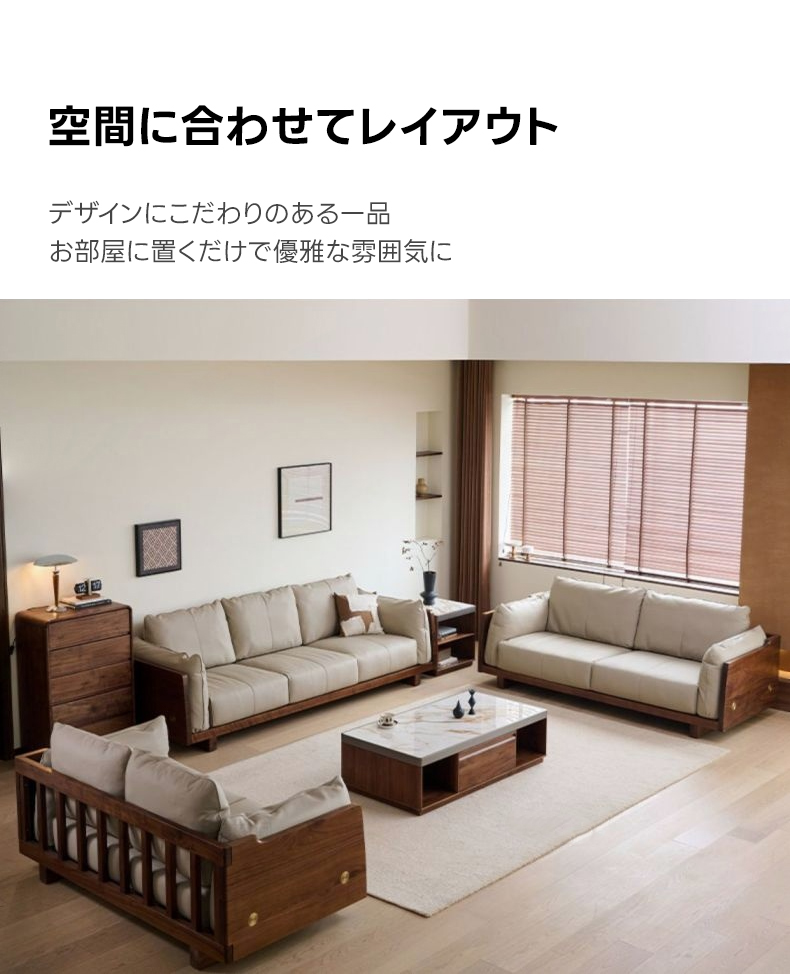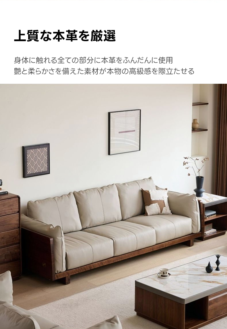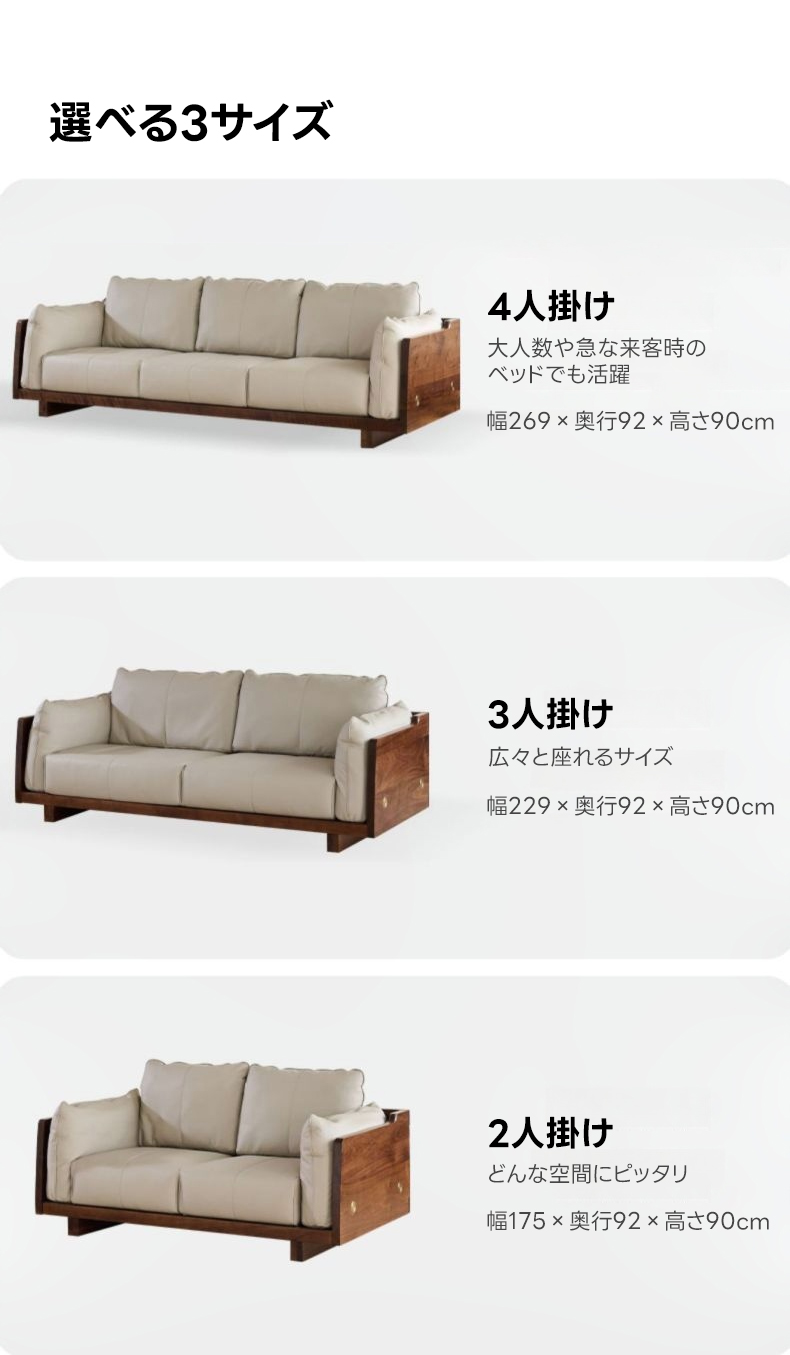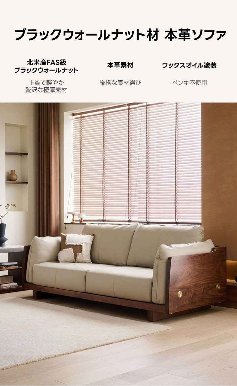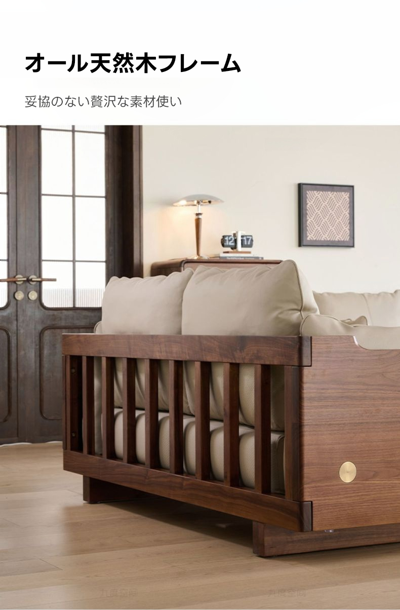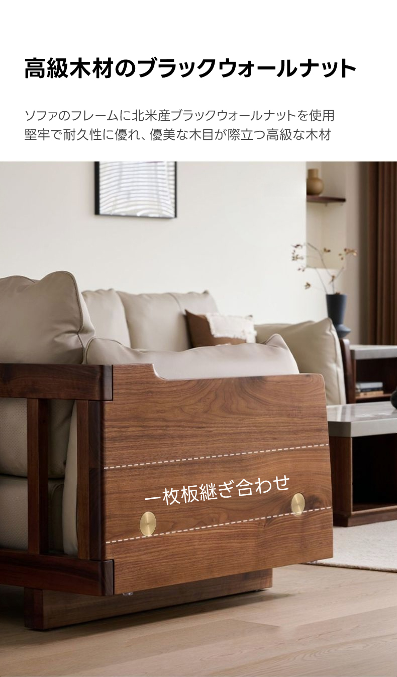 ブラックウォールナット材 本革ソファ