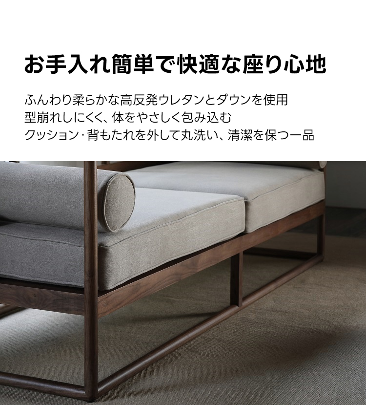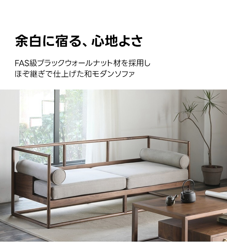 - 【洗練されたデザインと快適な座り心地】和モダンウッドラインソファは、FAS級ブラックウォールナット材を使用し、耐久性と高級感を兼ね備えたデザインです。高反発ウレタンとダウンを使用したクッションは、柔らかく体を優しく包み込み、長時間座っても快適です。