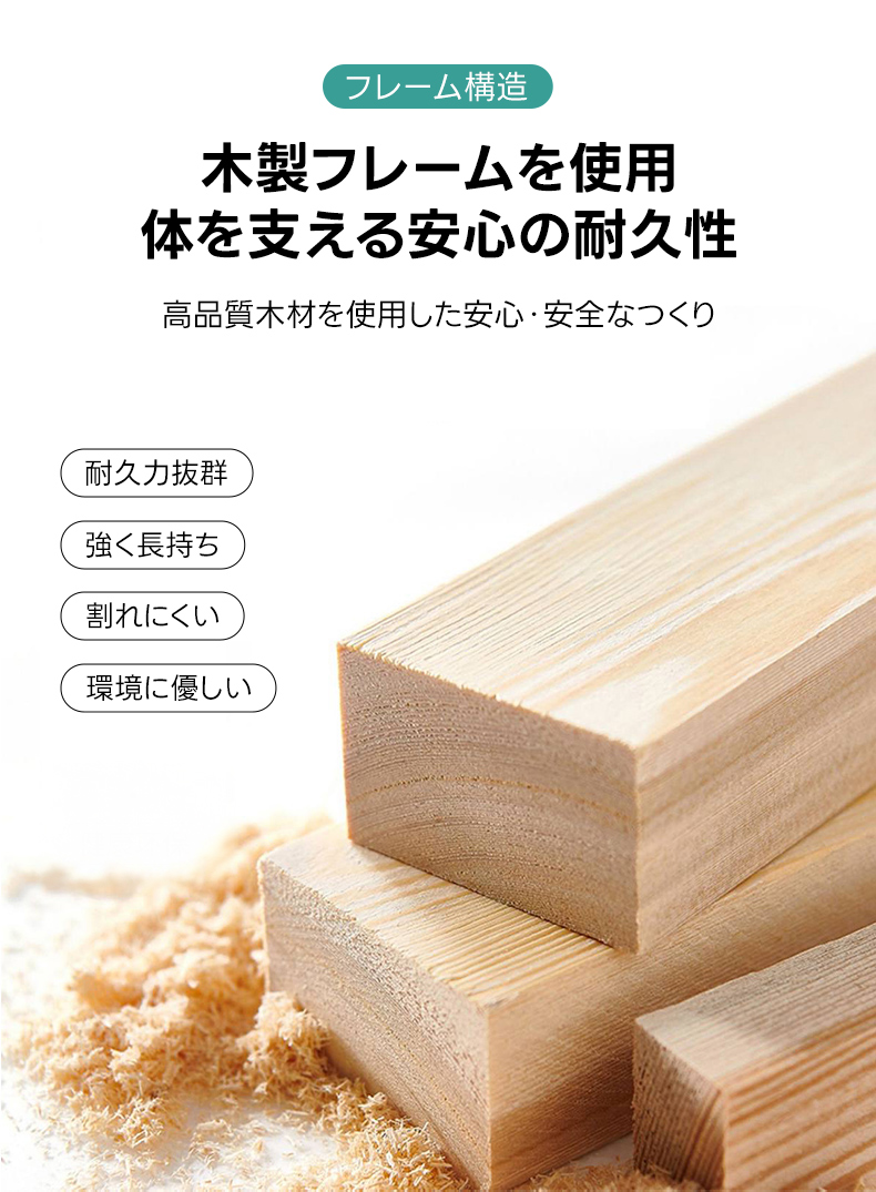 - 【耐久性のあるフレーム】:高硬度木製フレームを使用しており、安全性の高い耐荷重性を持っています。環境にも優しい天然木材を使用し、長持ちする安心の耐久性を実現しました。