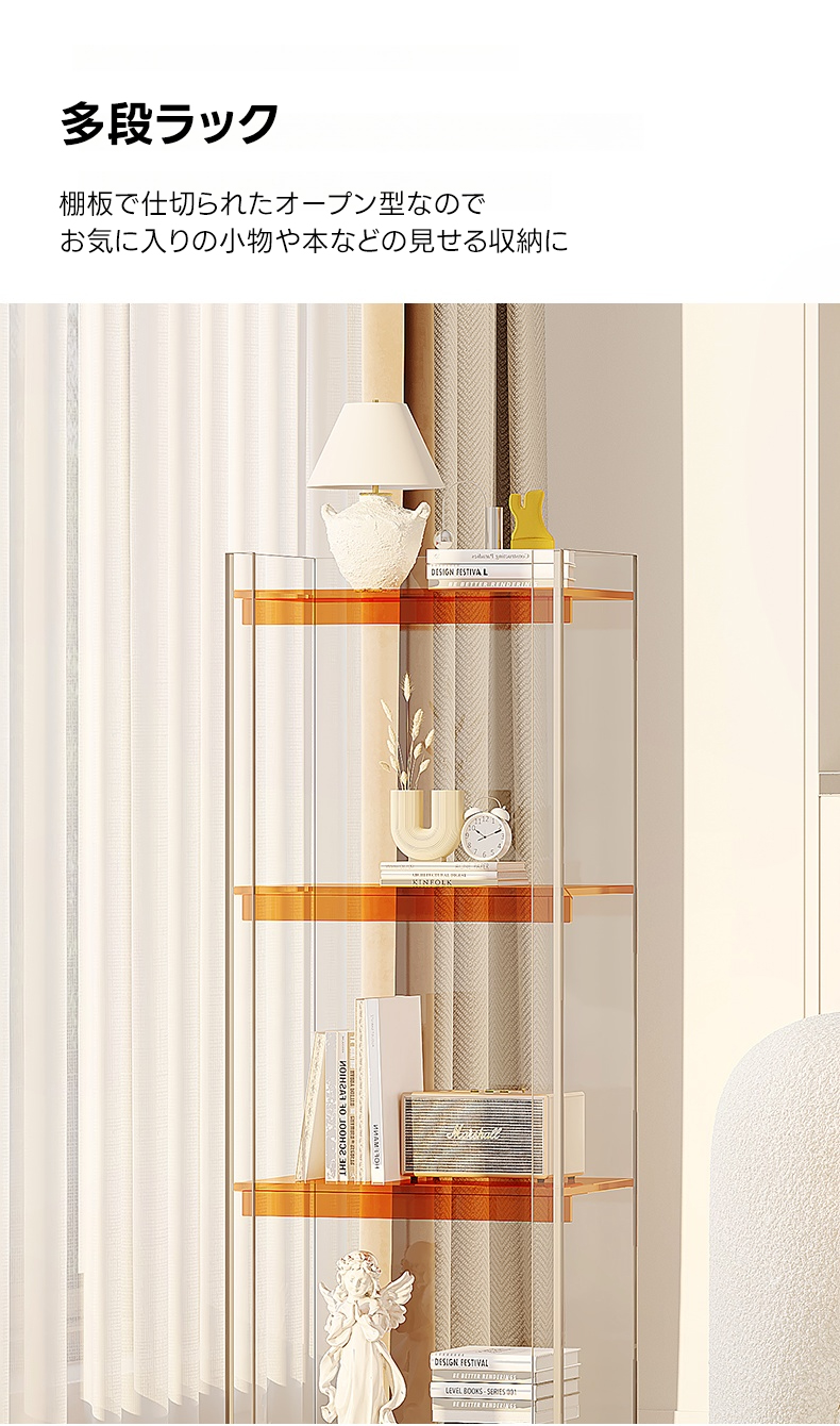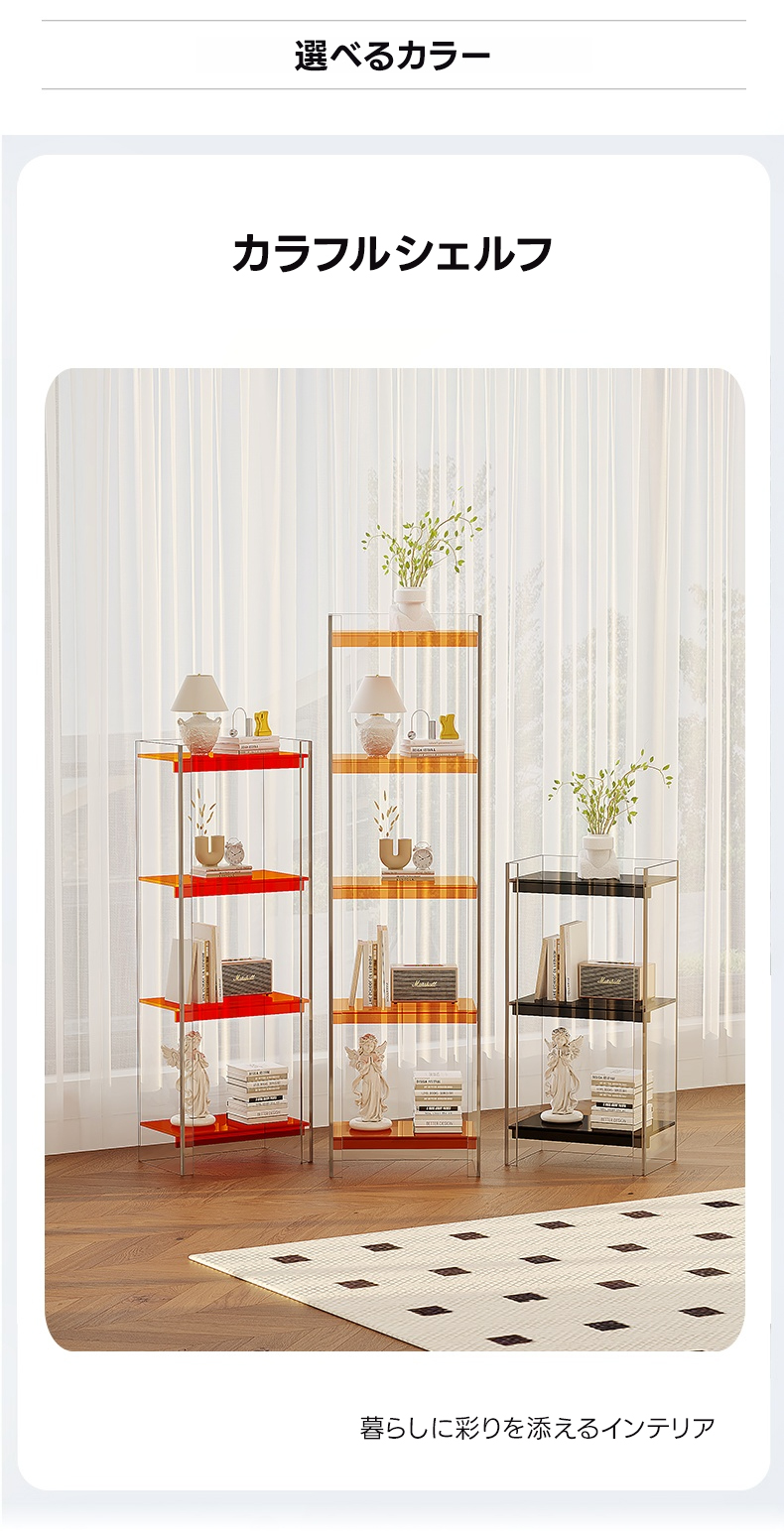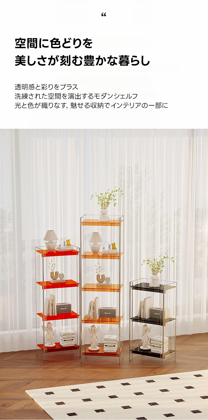 - 【多機能収納キャビネット】アクリル収納キャビネットは、シンプルモダンなデザインと高品質アクリル素材を使用し、どんなインテリアにも調和します。オープンシェルフデザインで、お気に入りの小物や本を美しくディスプレイできます。