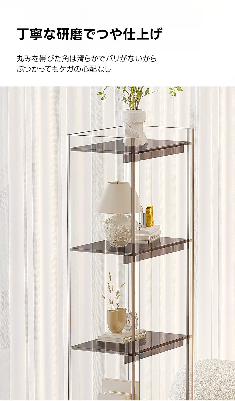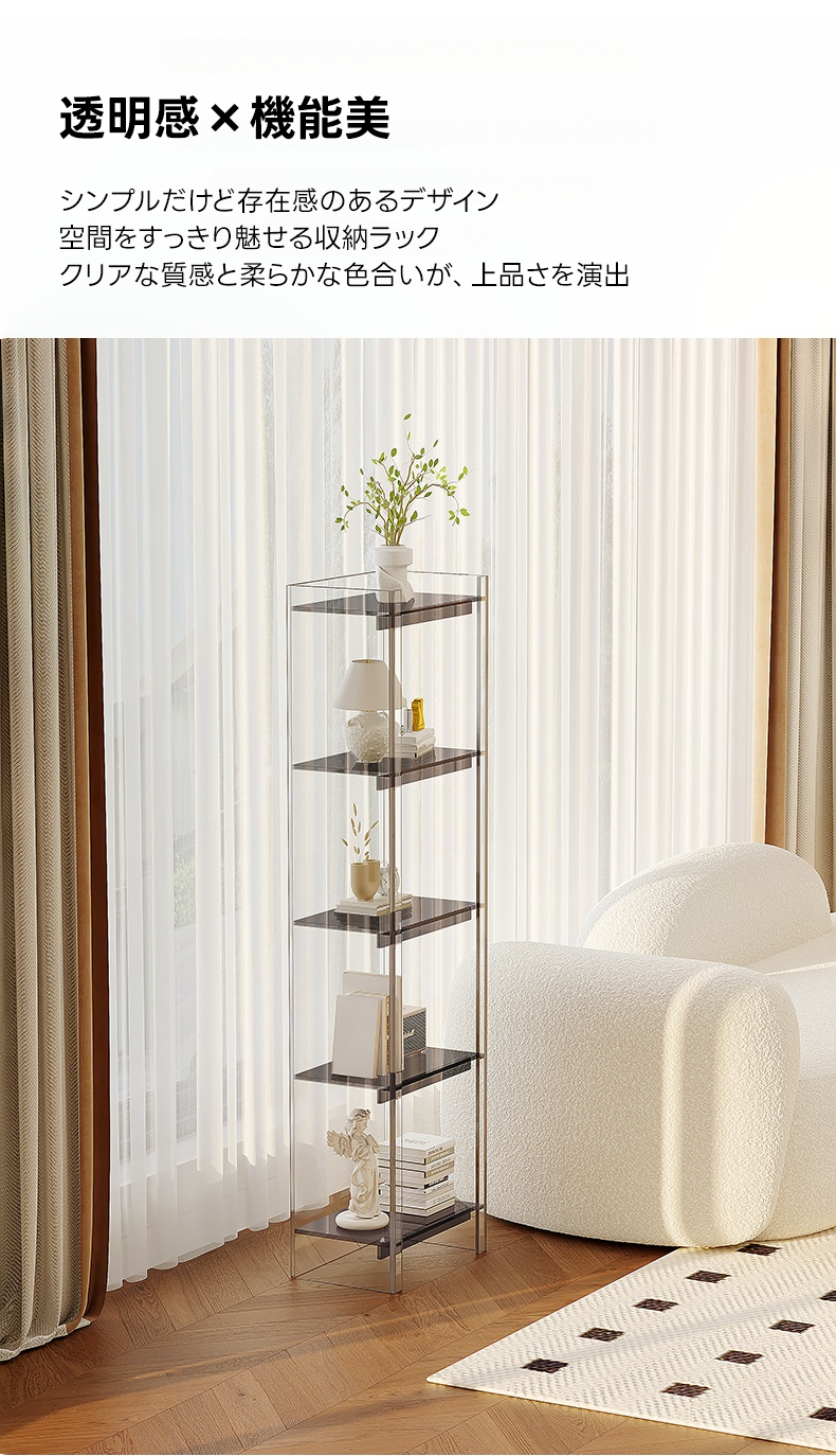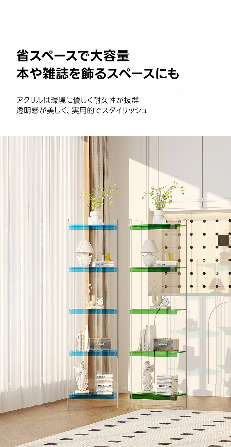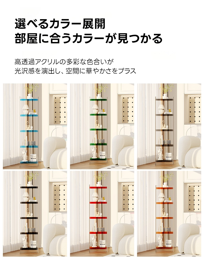 - 【多機能収納キャビネット】アクリル収納キャビネットは、シンプルモダンなデザインと高品質アクリル素材を使用し、どんなインテリアにも調和します。オープンシェルフデザインで、お気に入りの小物や本を美しくディスプレイできます。