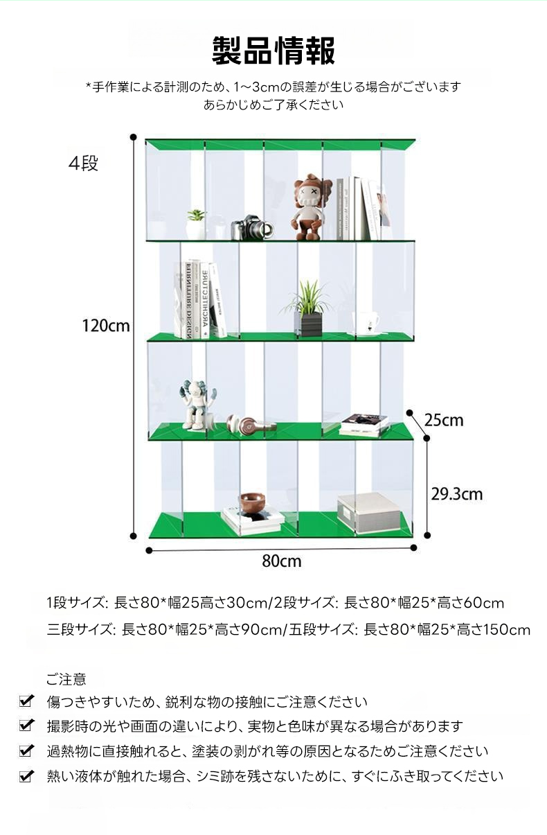 - 【優れた収納力とデザイン性】アクリルコレクションラックは、幅80cm、奥行25cmのコンパクトサイズながらも、4段または5段の選択肢があり、大容量の収納スペースを提供します。シンプルでモダンなデザインがどんな空間にも調和し、インテリアとしてもおしゃれに演出します。
