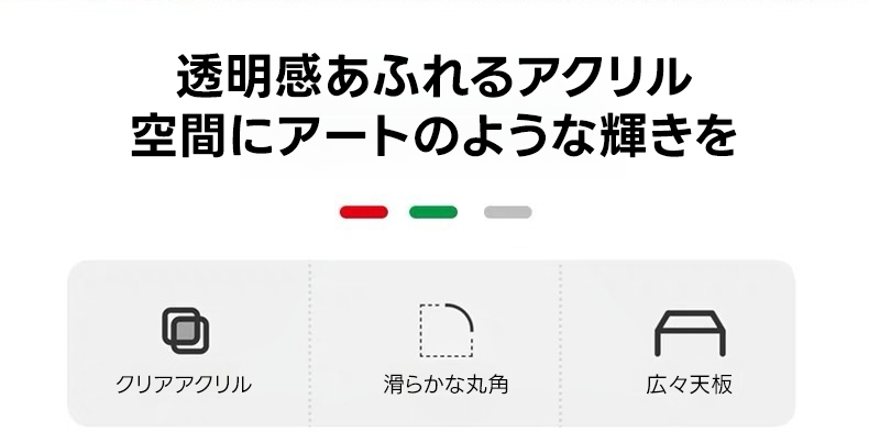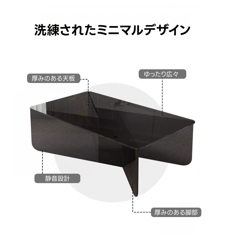 - 【高品質な素材とデザイン】:高品質なクリアアクリルを使用し、透明感と耐久性を兼ね備えています。滑らかな丸角と広々とした天板が特徴で、洗練されたミニマルデザインを実現しました。